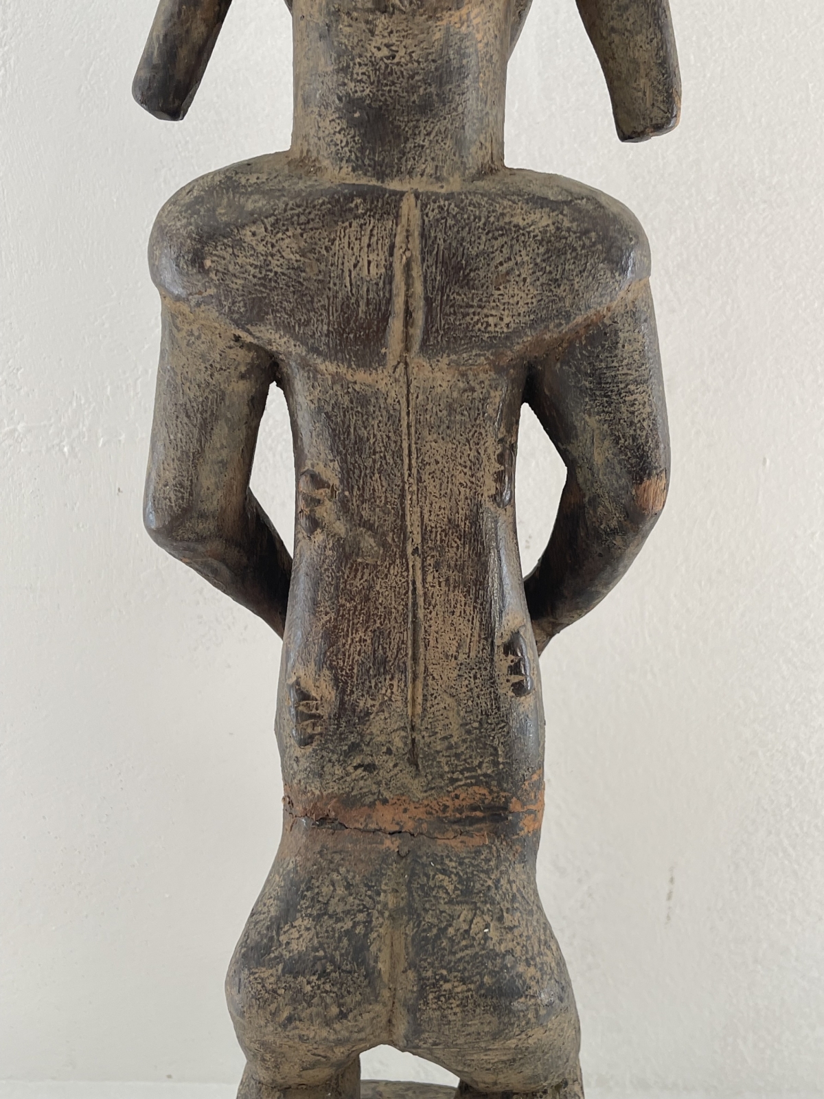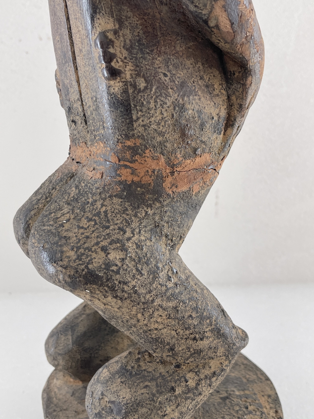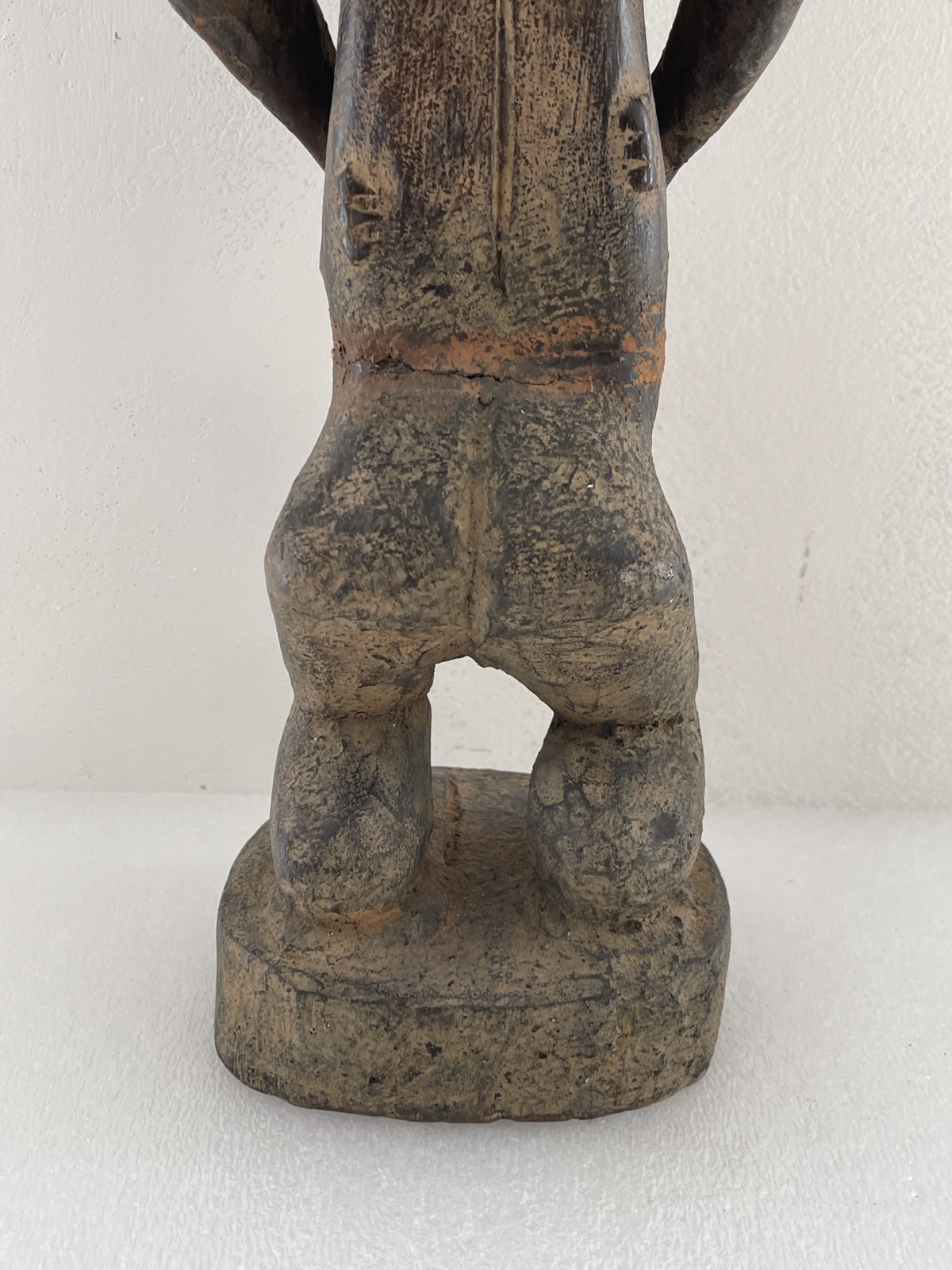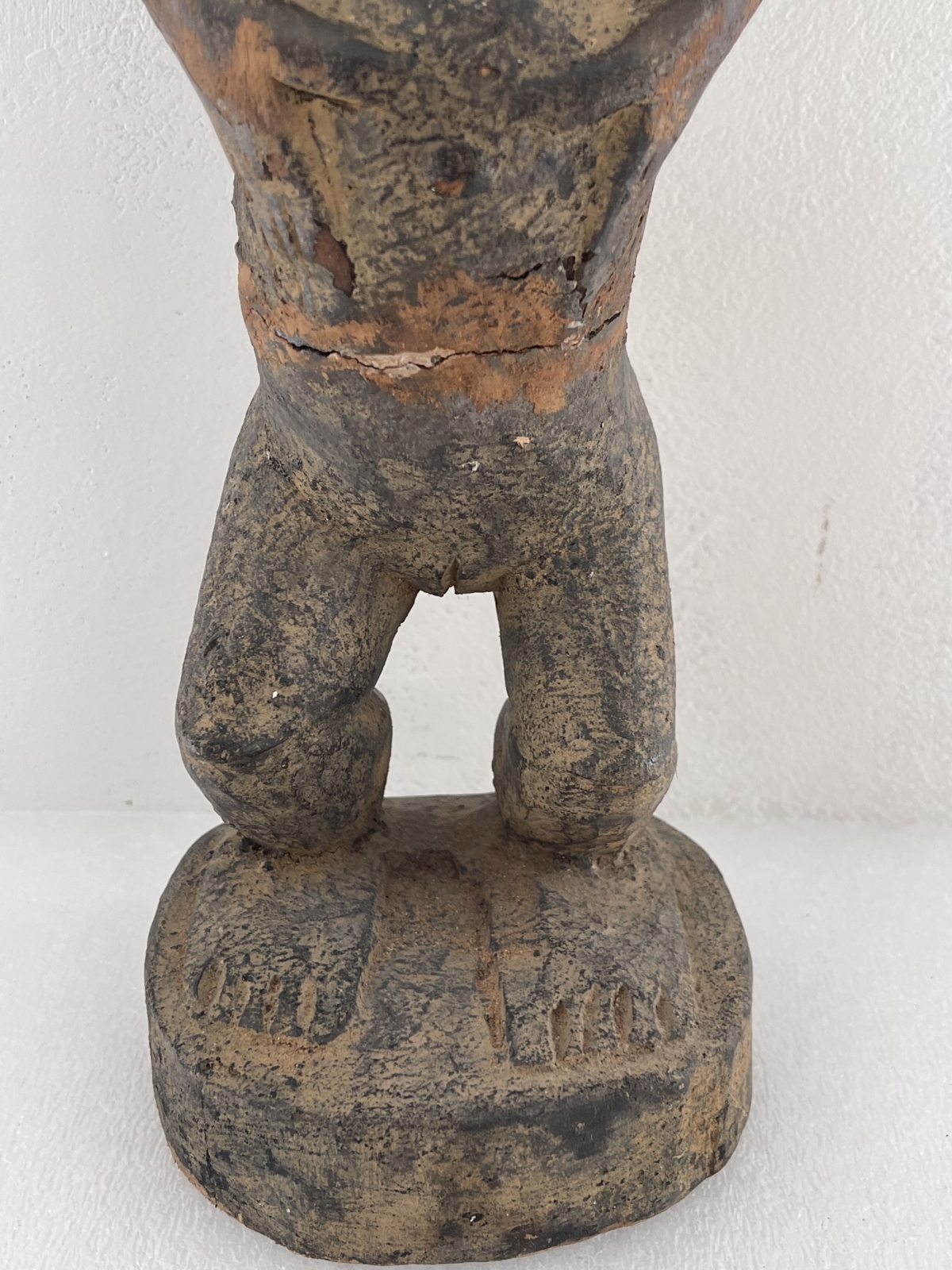 Nous sommes donc sur une pièce animiste de type fétiche de fort caractère, capable d'interférer auprès des défunts et également lors de dangers. On notera la présence de nombreuses scarifications et formes symboliques ,témoins d'une forte culture initiatique a priori perdue.