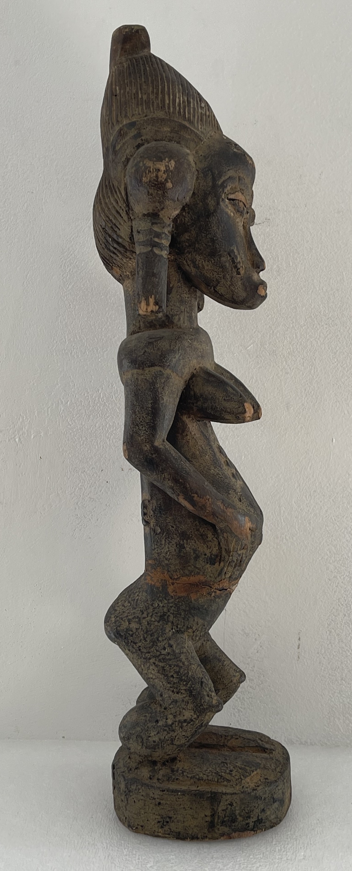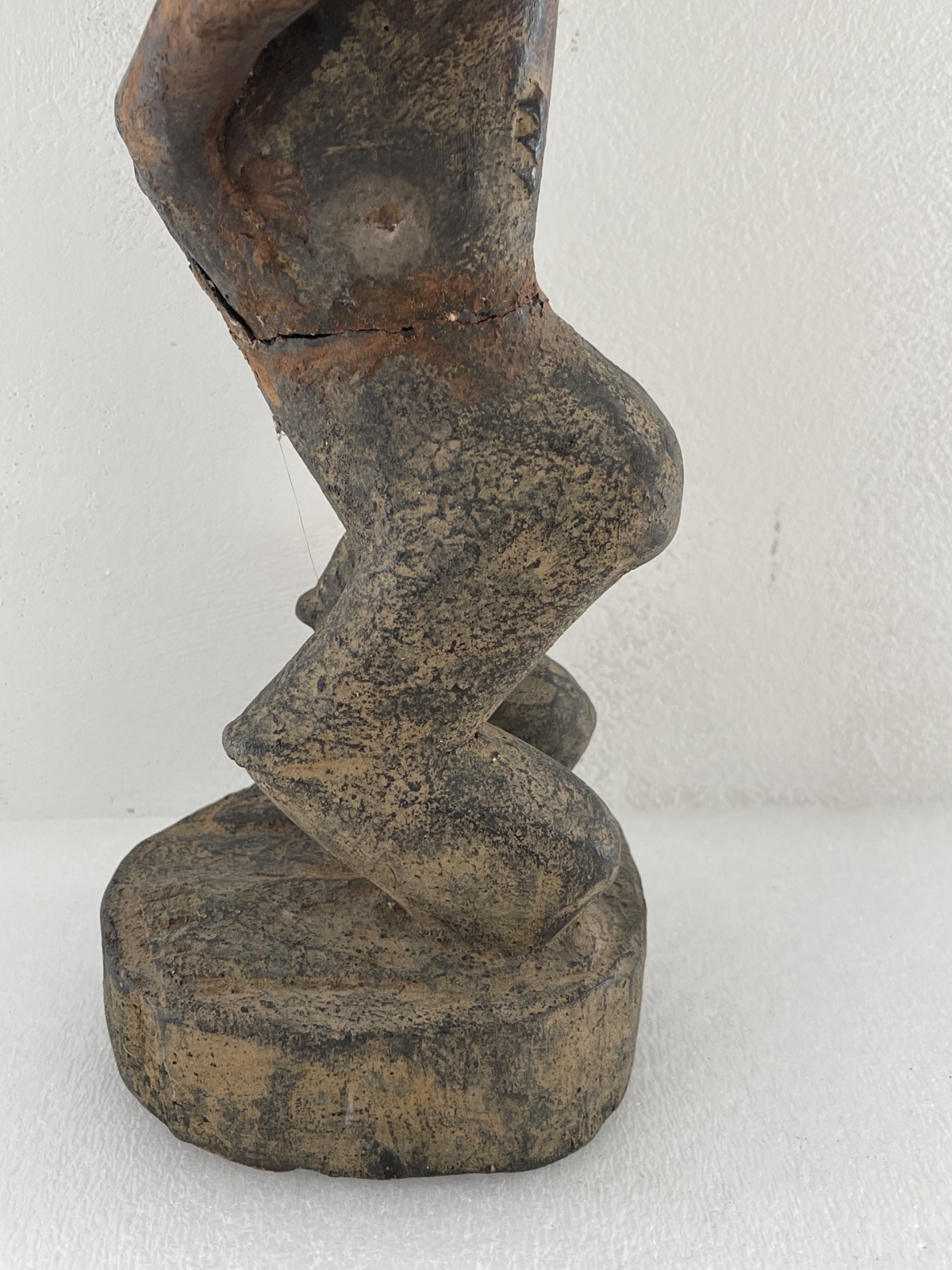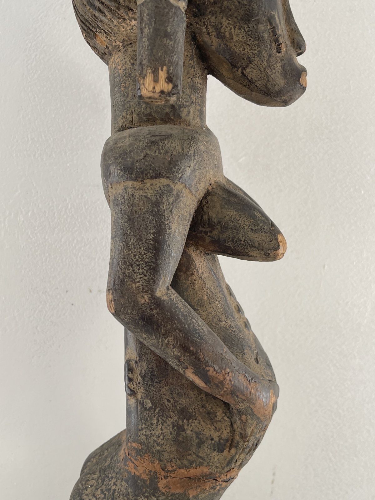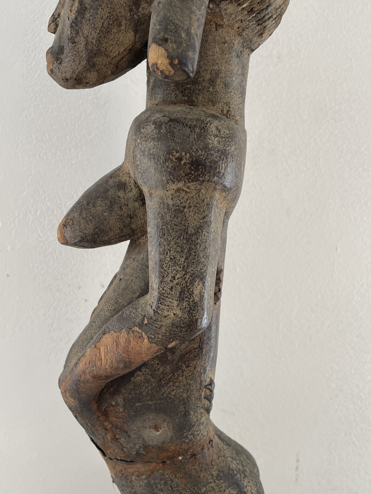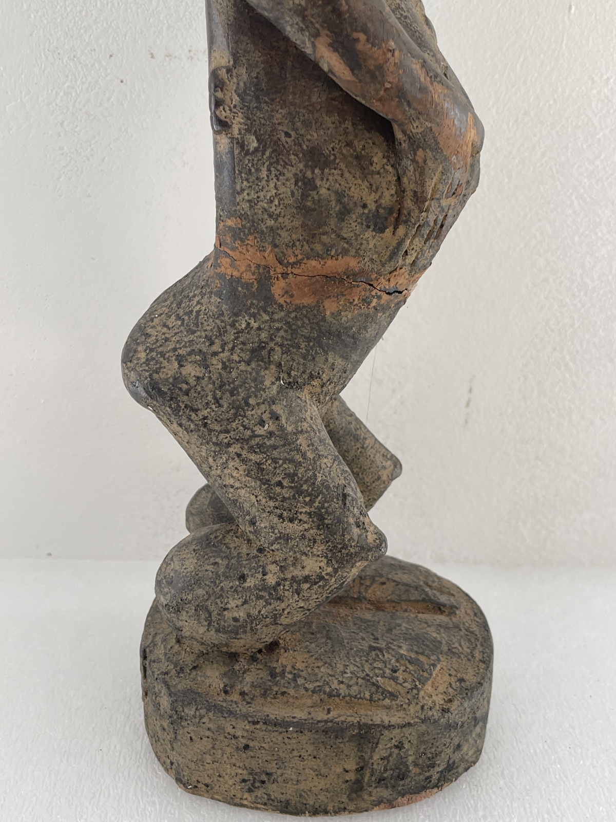 Nous sommes donc sur une pièce animiste de type fétiche de fort caractère, capable d'interférer auprès des défunts et également lors de dangers. On notera la présence de nombreuses scarifications et formes symboliques ,témoins d'une forte culture initiatique a priori perdue.