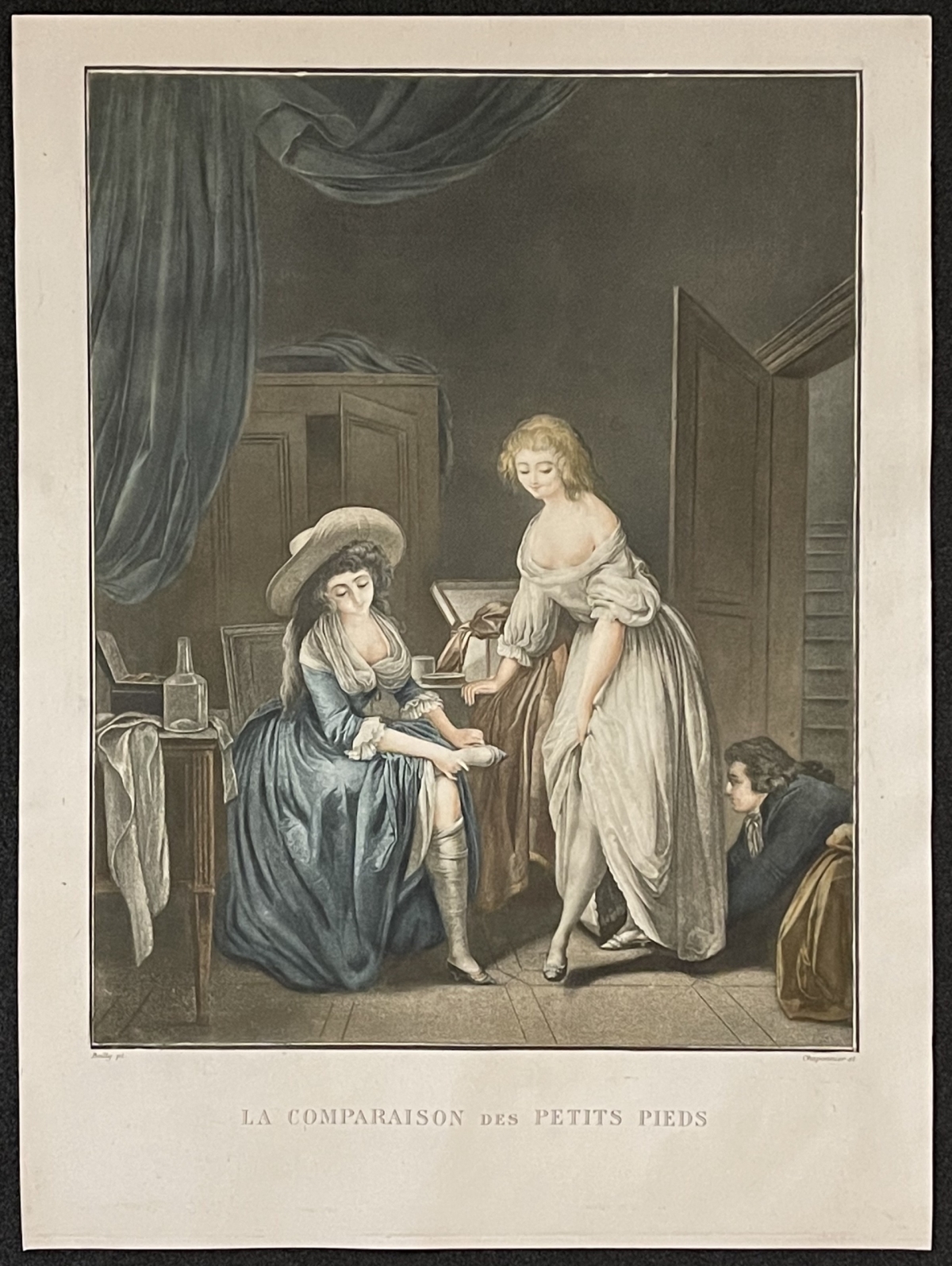 Louis Léopold BOILLY (1761-1845) La comparaison des petits pieds estampe au pointillé de 1791