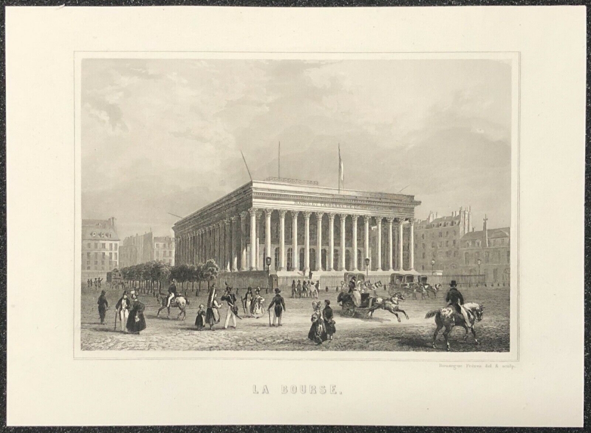 Grande estampe XIX e Paris La Bourse Lithographie France Je vous propose cette grande lithographie de Paris: "La Bourse". La feuille fait 41,8cm...
