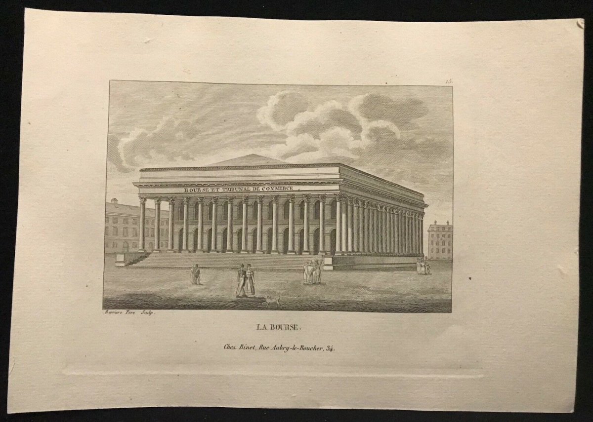 Grande estampe XIX e Paris La Bourse Lithographie France Je vous propose cette grande lithographie de Paris: "La Bourse". La feuille fait 41,8cm...