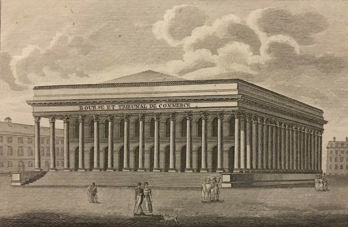 Paris La Bourse gravure lithographie vers 1840 France Je vous propose cette belle gravure vers 1840. Dimensions : la feuille fait 19,8 cm x 14,3...