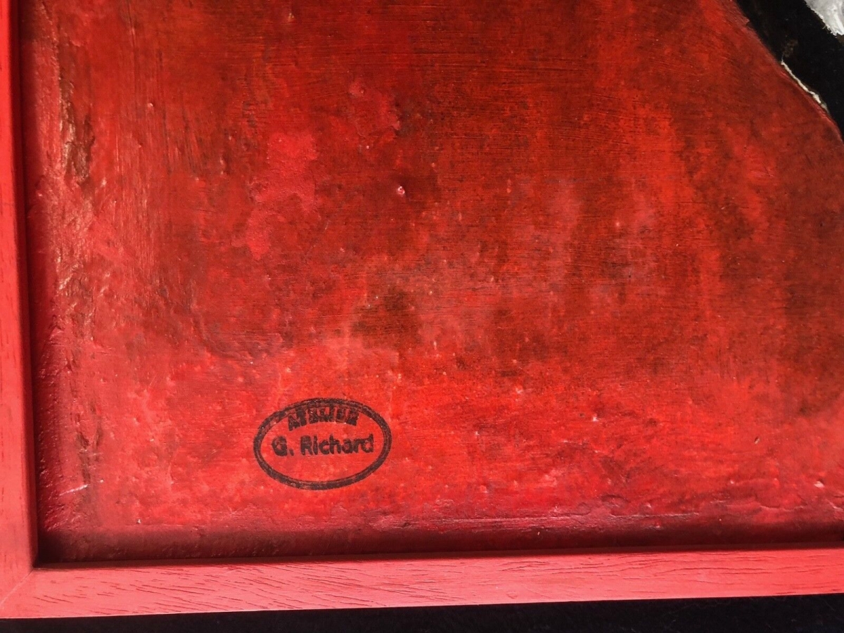 Artculture6 vous propose cette grande oeuvre de Gabriel Richard 1914-1993. Nous présentons sur ce site quelques exemples de sa production. Parfois cet artiste navigua entre l'art naïf et l'art brut, et peu de peintre ont pu rentrer de façon aboutie dans le no man's land de cette forme d'expression.