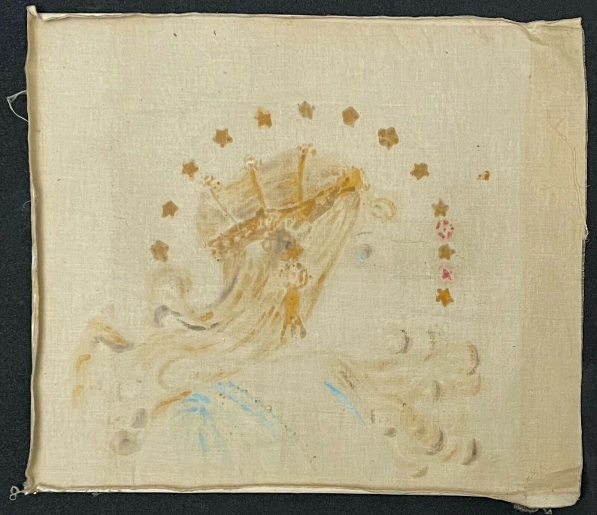 Je vous propose ce rare velours travaillé et peint (non imprimé). Fin XIXe art nouveau. 44,5 cm par 46 cm. Très infimes petites salissures pouvant être nettoyée (moi je n'y touche pas) signalées pour le principe. Très belle pièce !