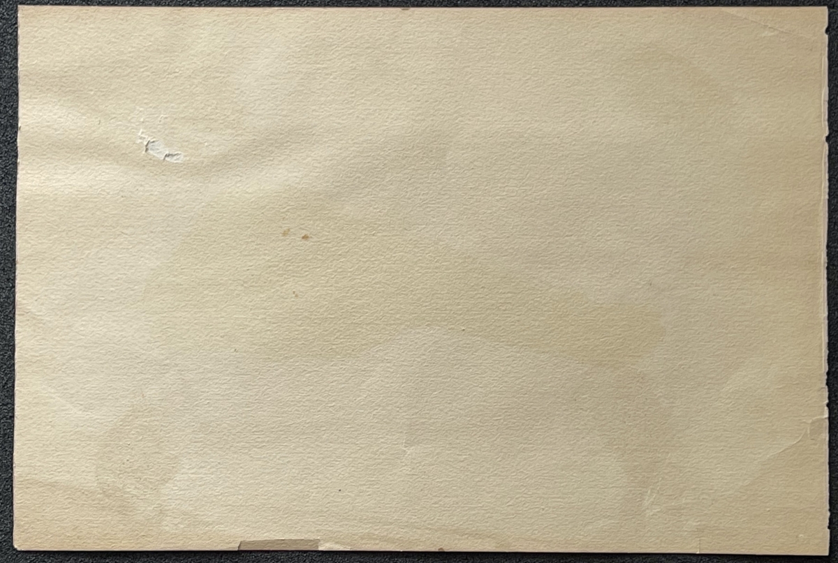 Le dessin seul fait 14,8 cm par 8,7 cm. On notera au verso un aminci de feuille invisible de face.