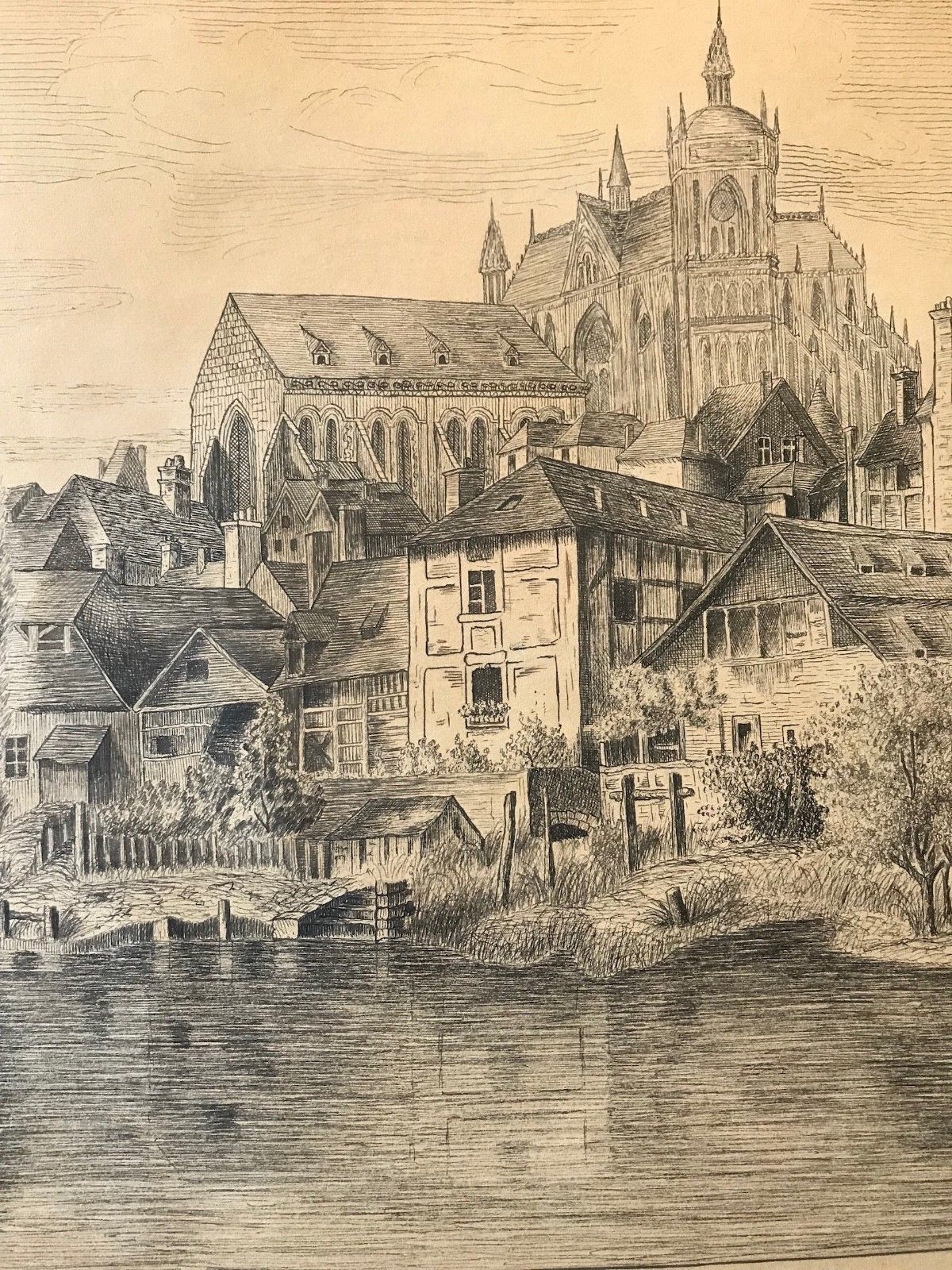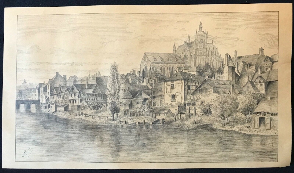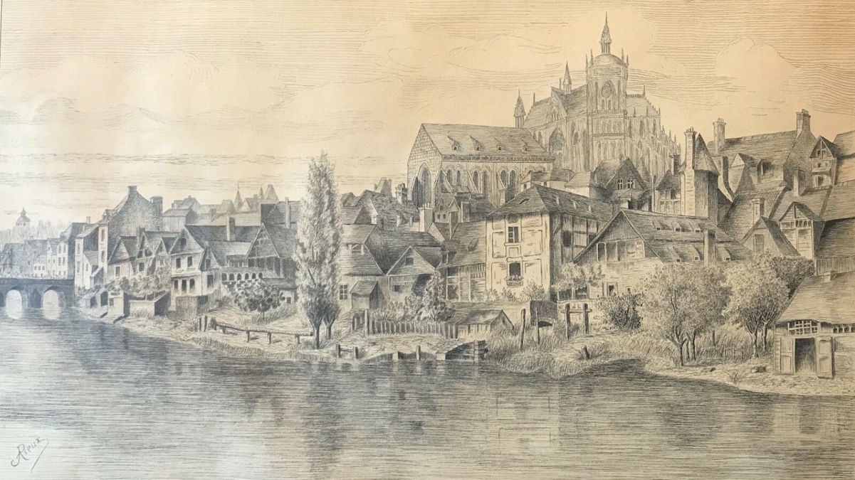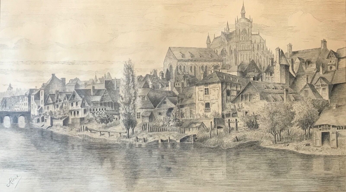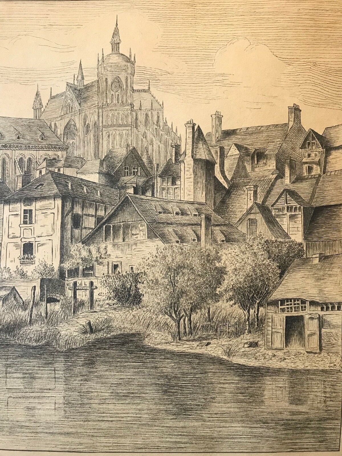 Grand dessin ville de Normandie ? ou Picardie début XIXe a identifier ?