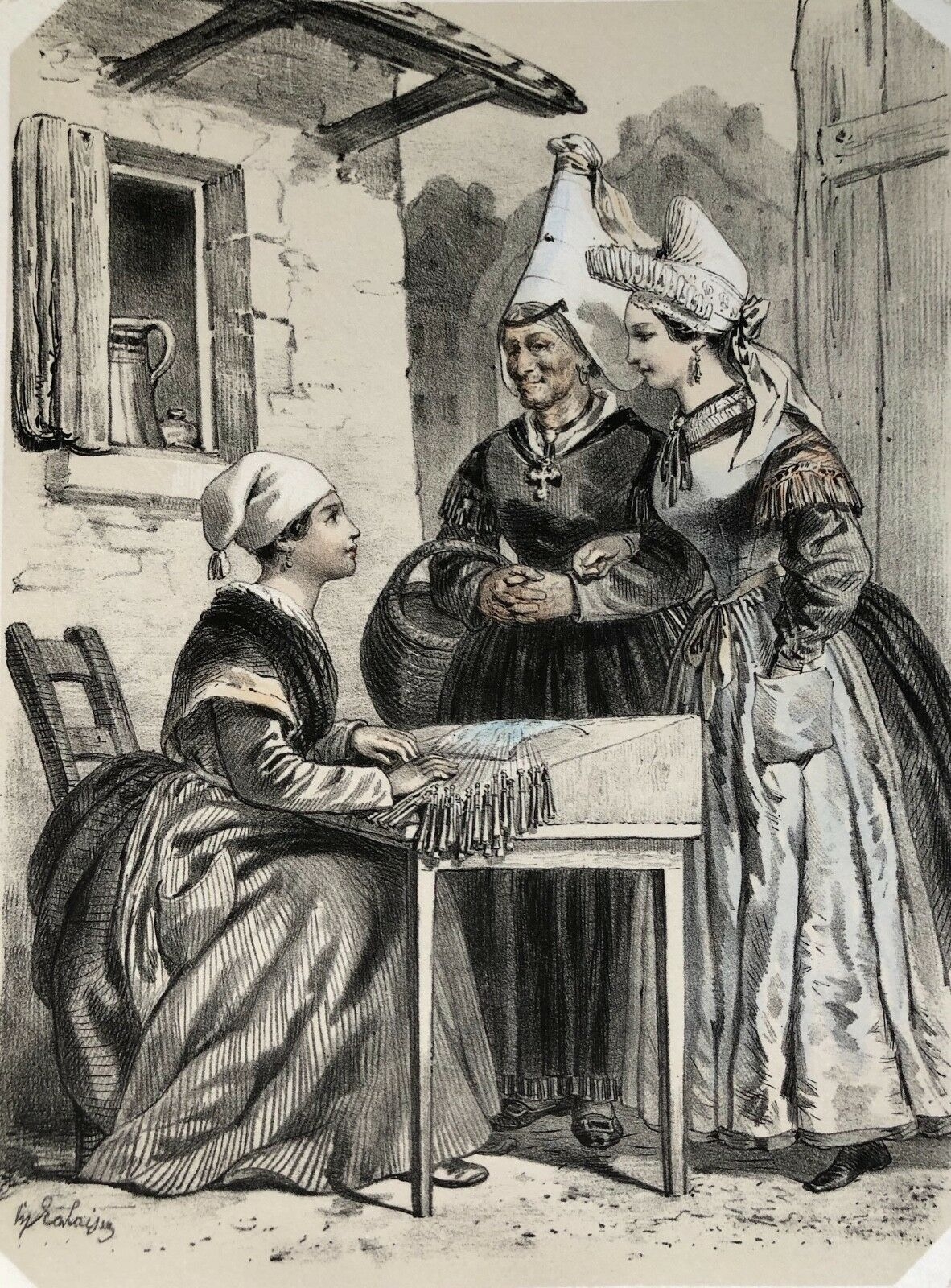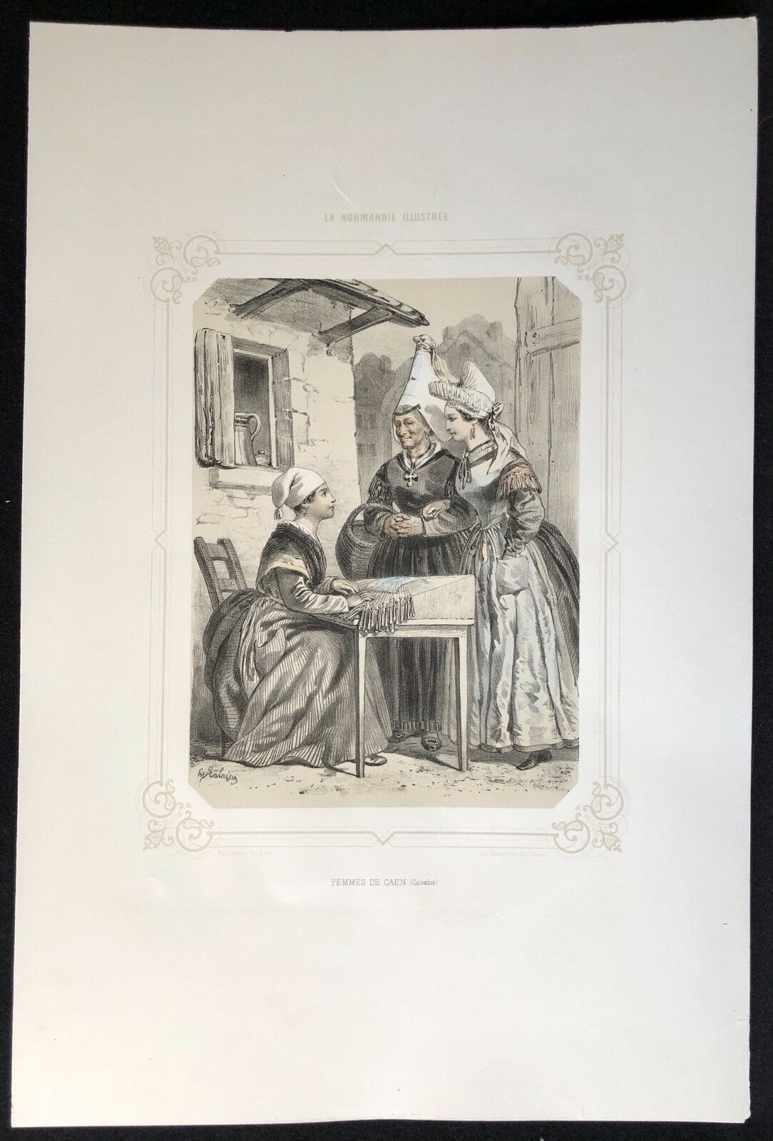 Pêcheur d' Arromanches Calvados Lithographie originale à deux tons 1852 France Je vous propose cette lithographie vers 1852. La feuille fait 31,5 cm par 22,7 cm, la gra...