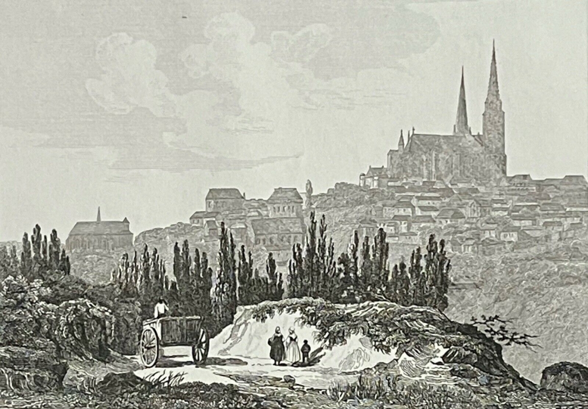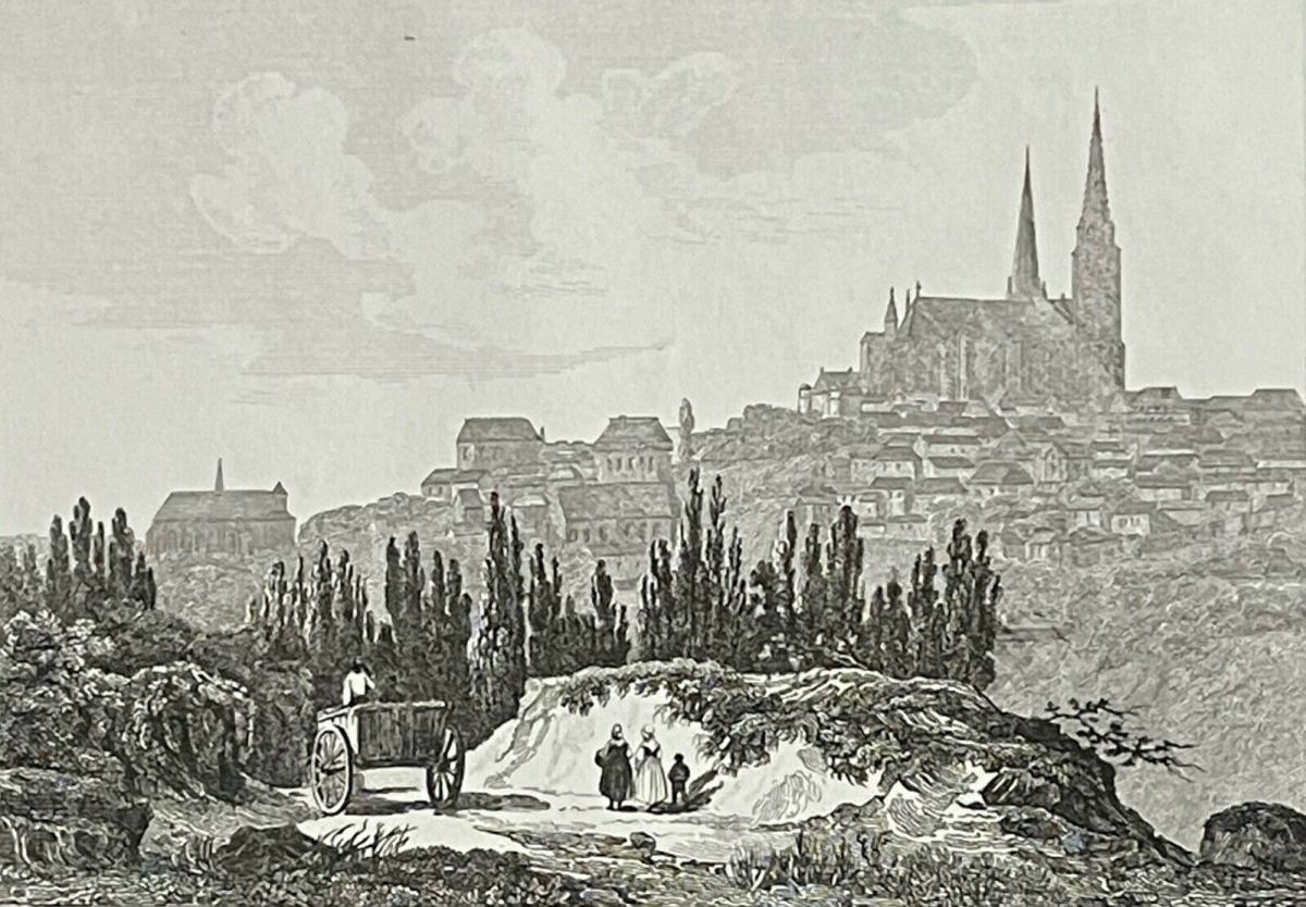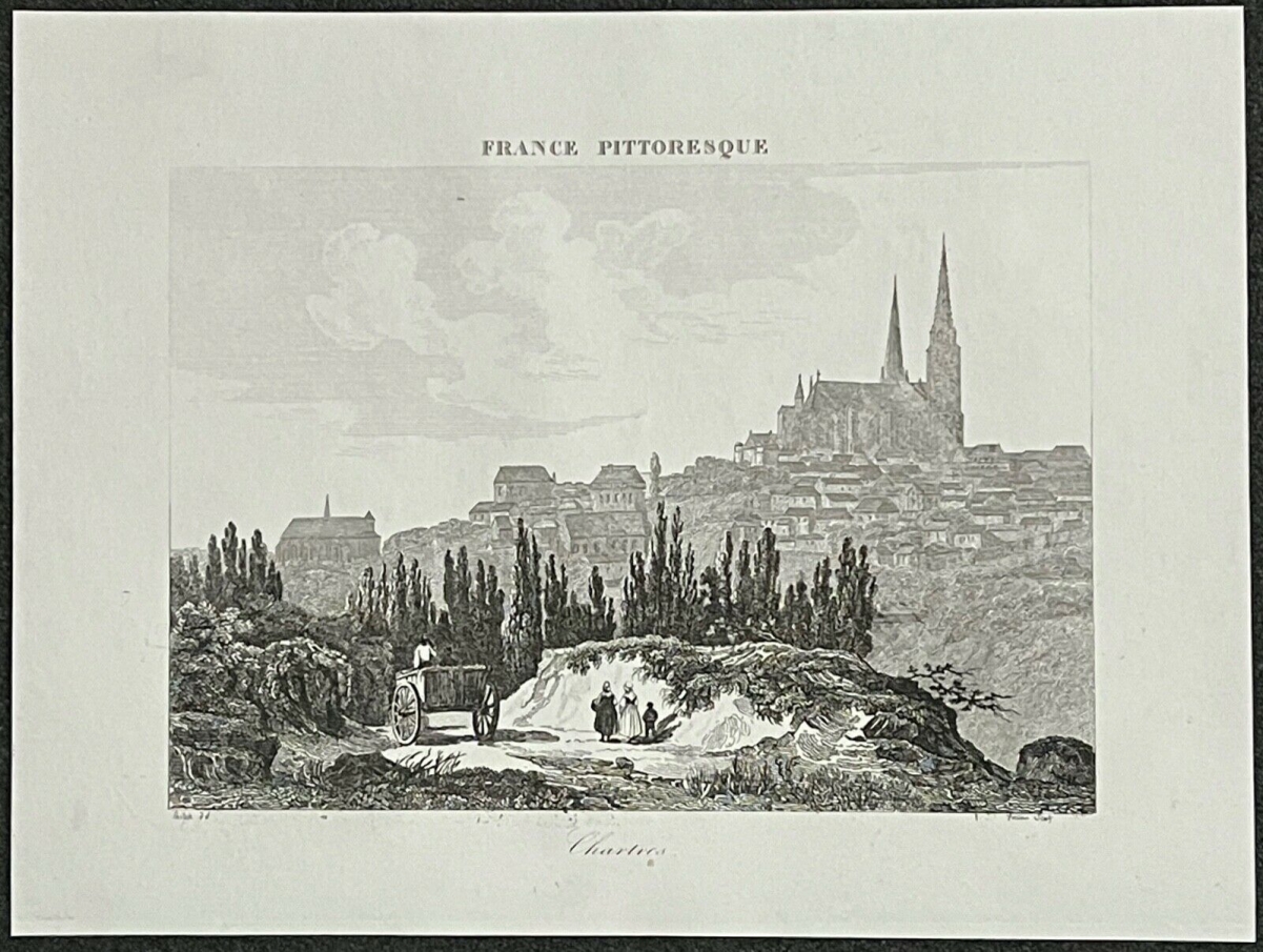 Chartres pêche à la ligne sur l'Eure gravure de 1837 Artculture6 vous propose cette gravure de 1837. La feuille fait 22,7 cm par 17 cm, la g...