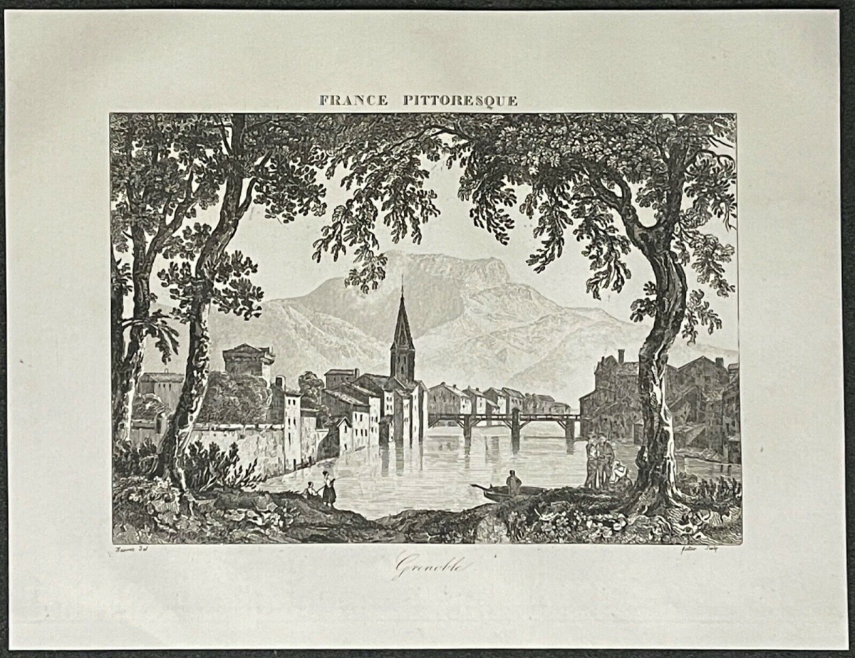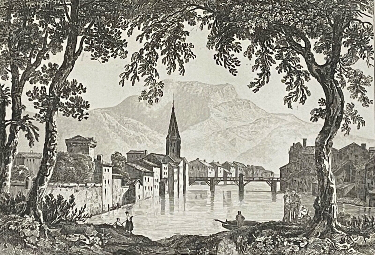 Ponteau chemin près Allevard-les-Bains lithographie vers 1850 Dauphiné Isère Je vous propose cette gravure vers 1850. La feuille fait 27 cm par 19,5 cm, la gravure seu...