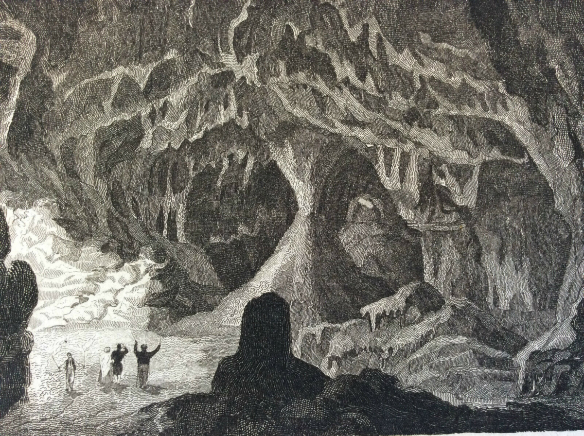 Grotte de Sauges Mayenne gravure sur acier XIXe France