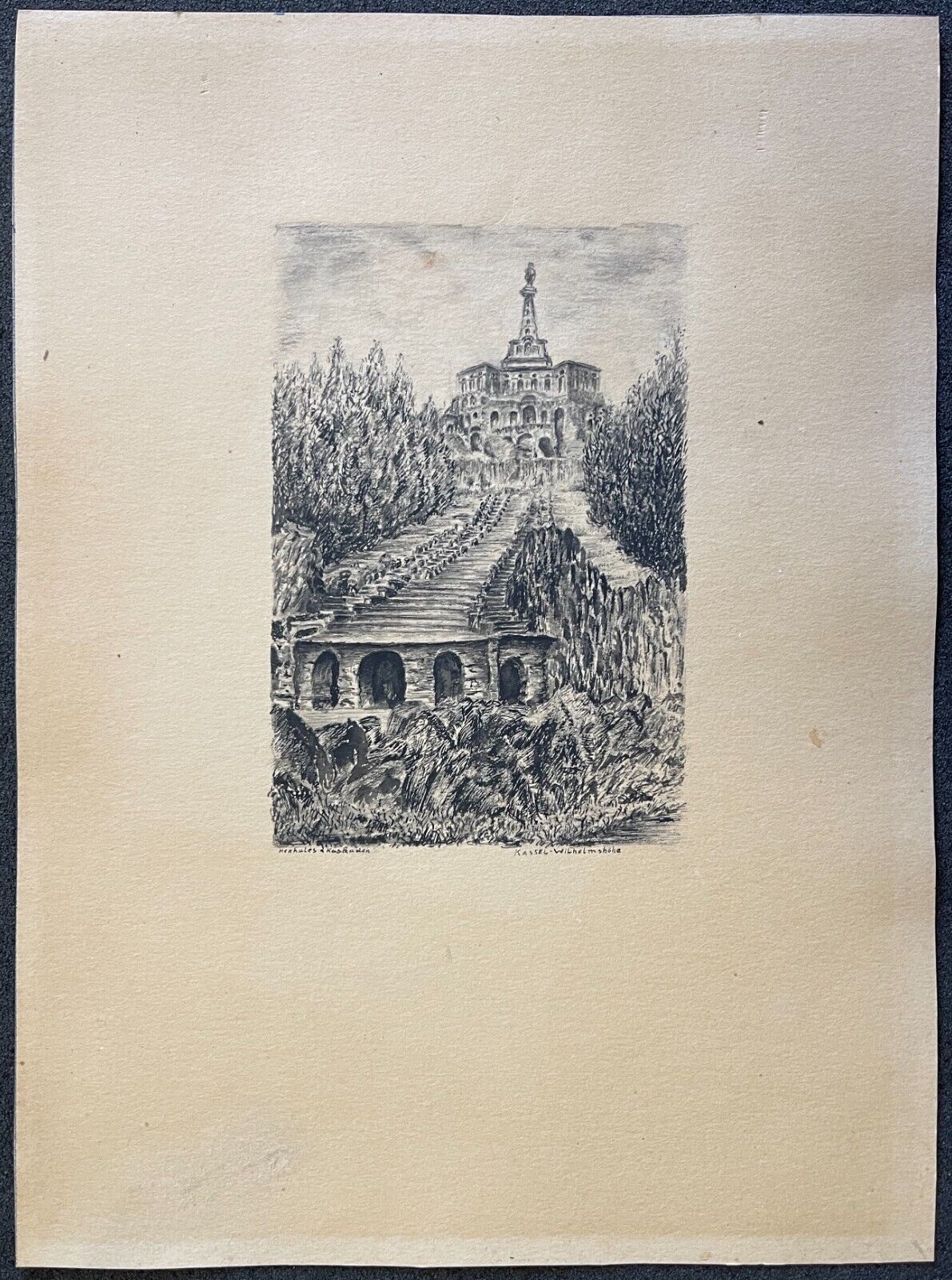 Schlitz Vogelsbergkreis dessin graphite de 1916 Vogelsberg Hesse Allemagne Je vous propose ce dessin de 1916 anonyme. 41 cm par 32 cm à saisir.