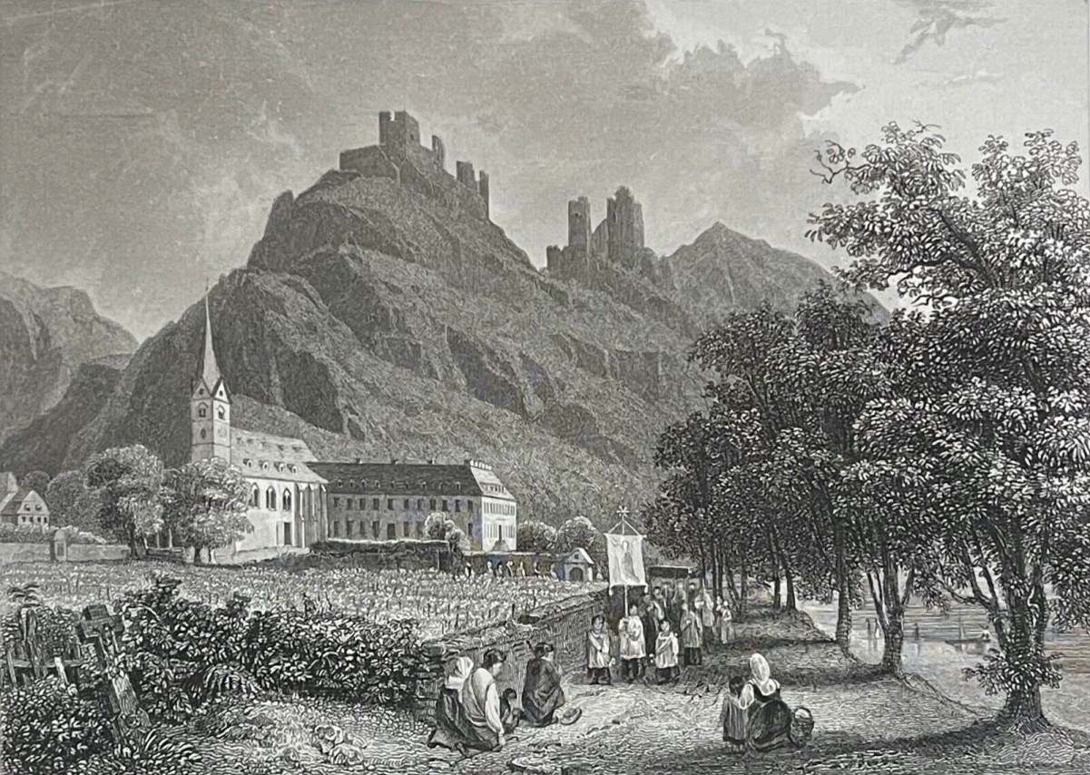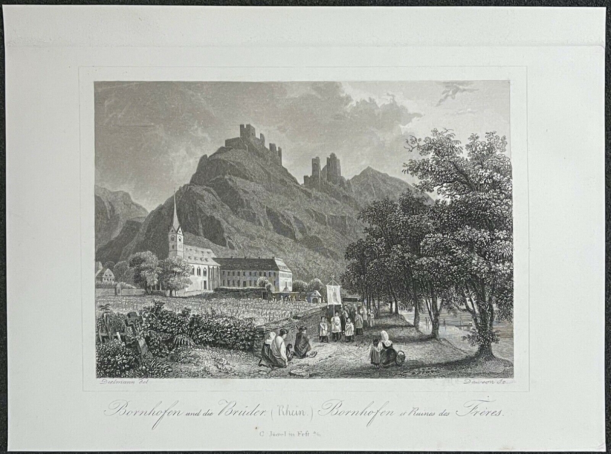 Bornhofen. J.F DIELMANN c 1844 Deutschland Allemagne