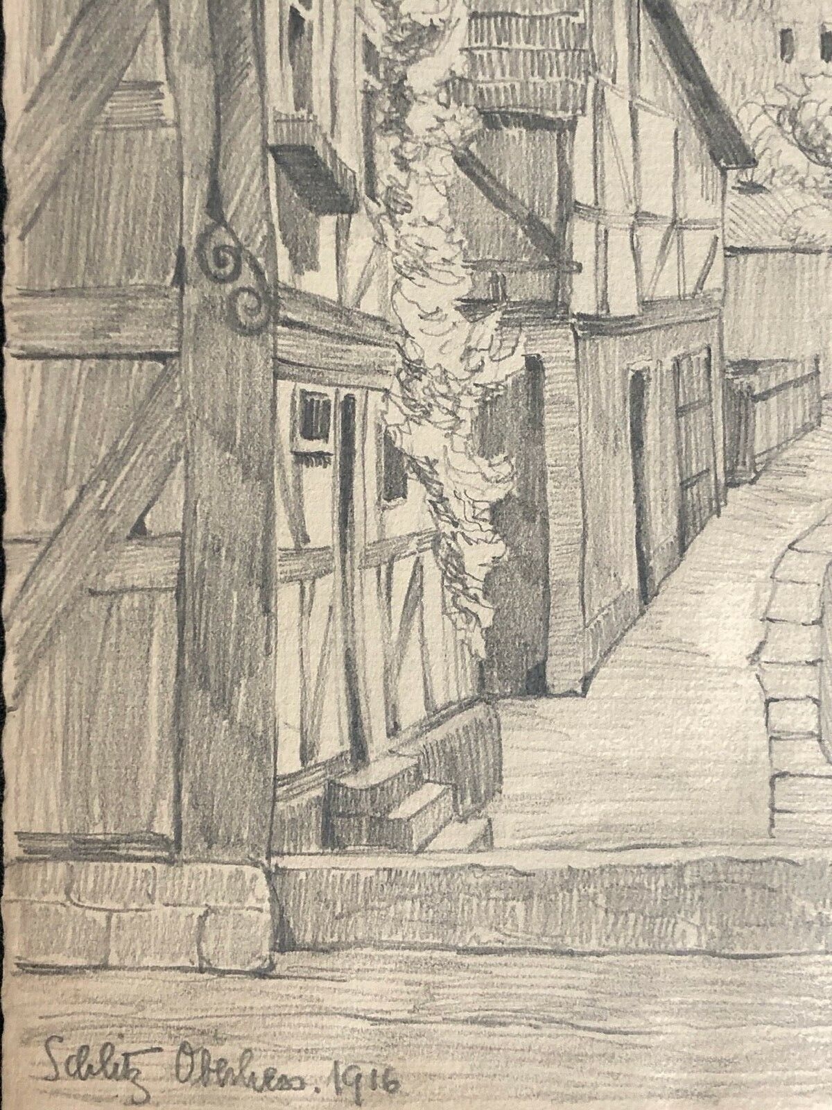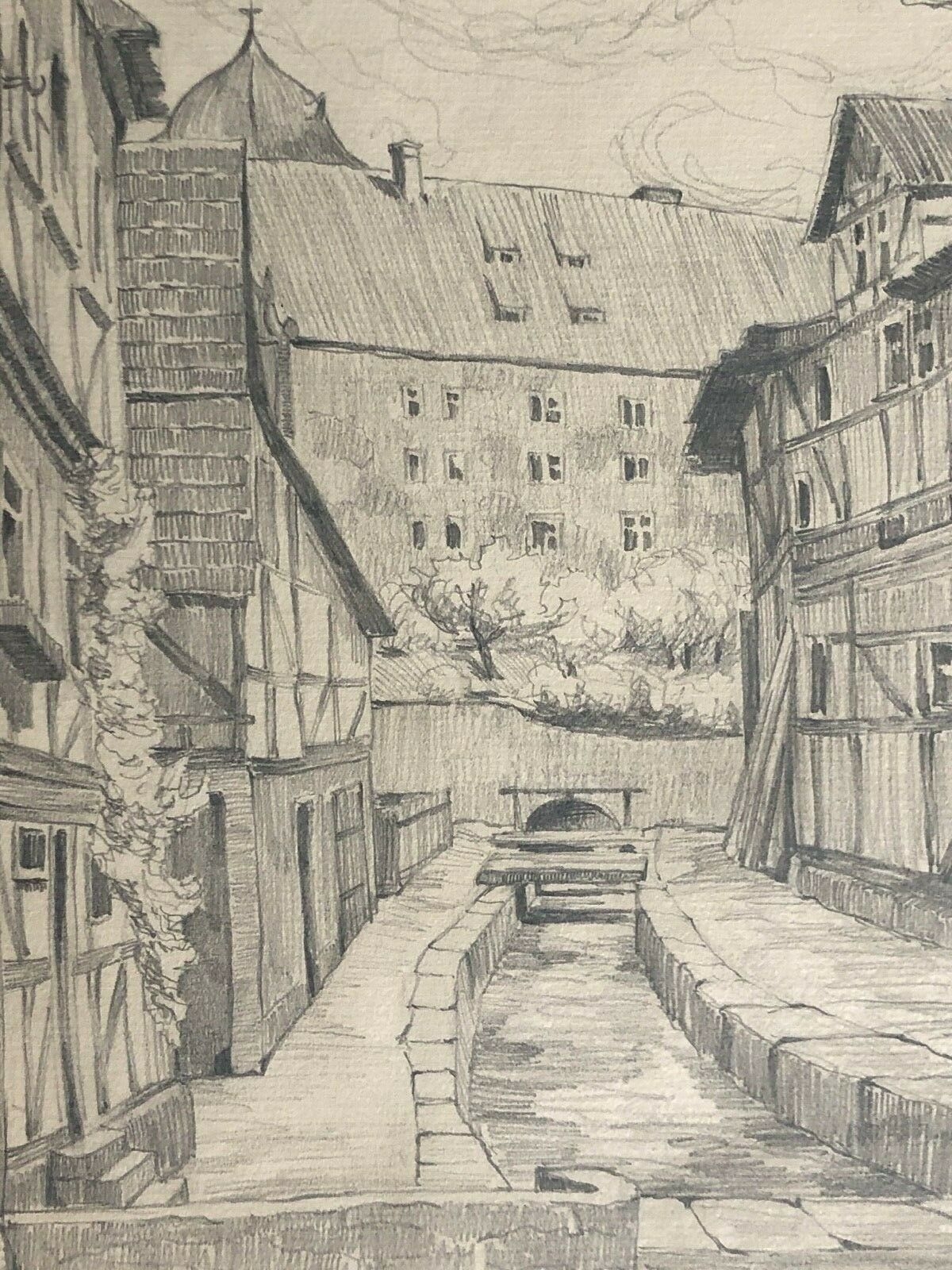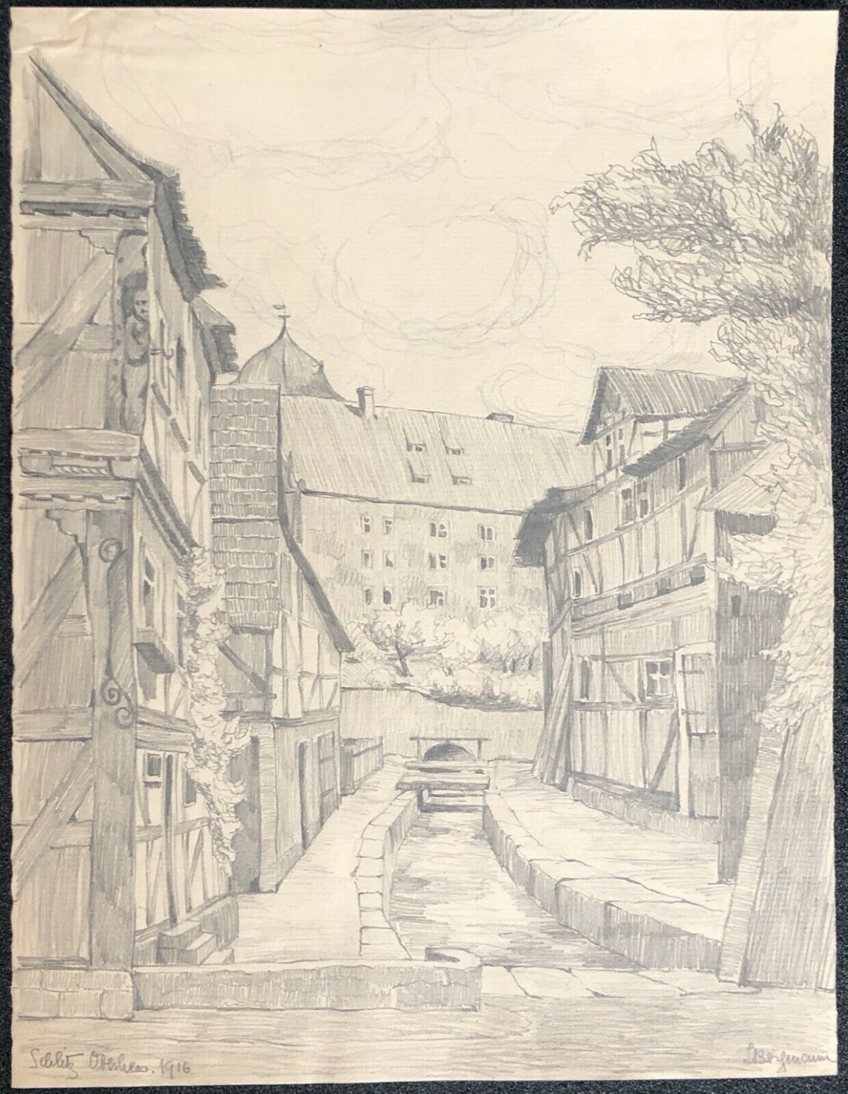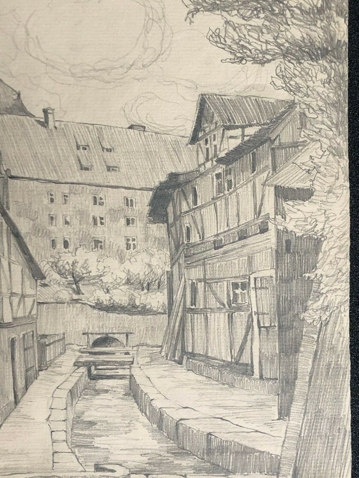 Idstein Hesse Allemagne Rheingau-Taunus Darmstadt dessin graphite de 1915 Je vous propose ce dessin de 1915 anonyme. 44,5 cm par 30,2 cm à saisir.