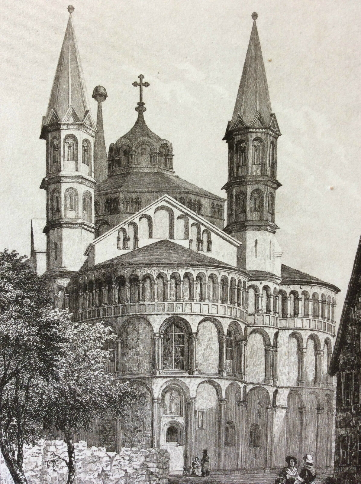 Cologne Eglise des Apôtres gravure de 1838 Allemagne