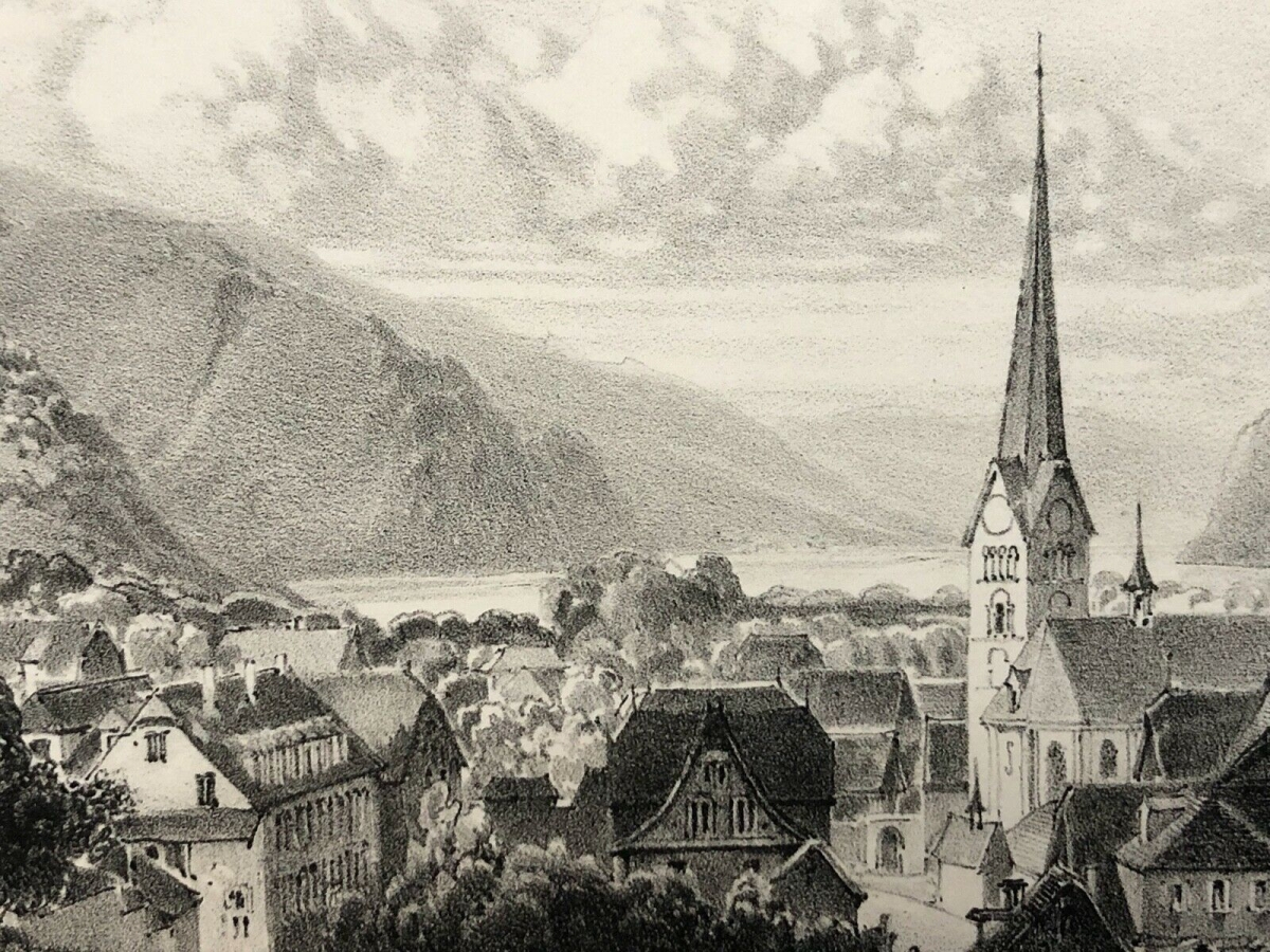 Autriche Innsbruck Tyrol gravure pointe sèche vers 1860 Je vous propose cette gravure en pointe sèche sur papier chine marouflée sur papier épais ...