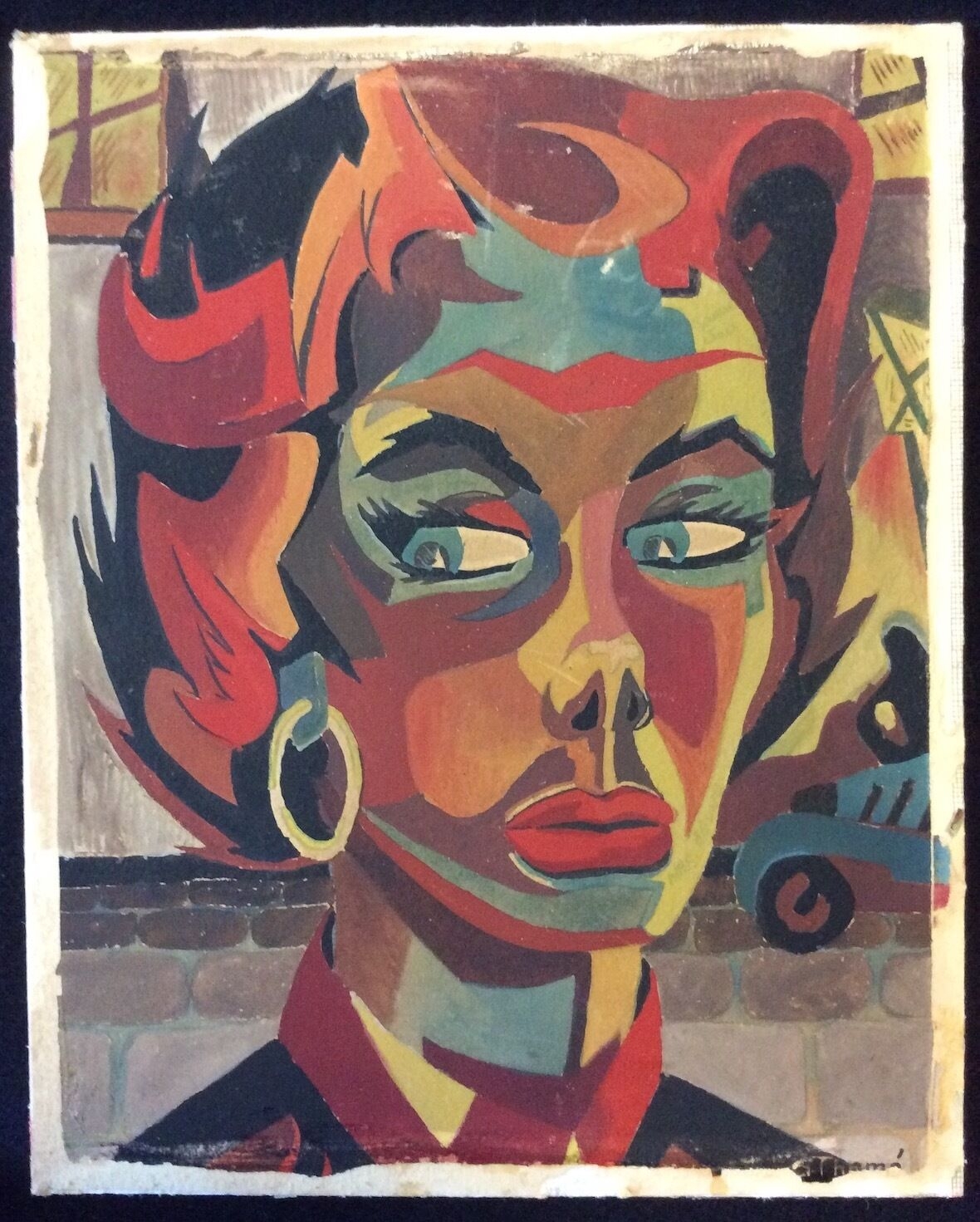 Je vous propose cette gouache en Expressionnisme Allemand. Première moitié du XXe. Gouache sur papier ayant été marouflé sur bois ou carton dur entoilé. 19,1cm par 15,2cm. Un petit manque sur le haut du front et en bas à gauche, (très léger facile a rattrapé).