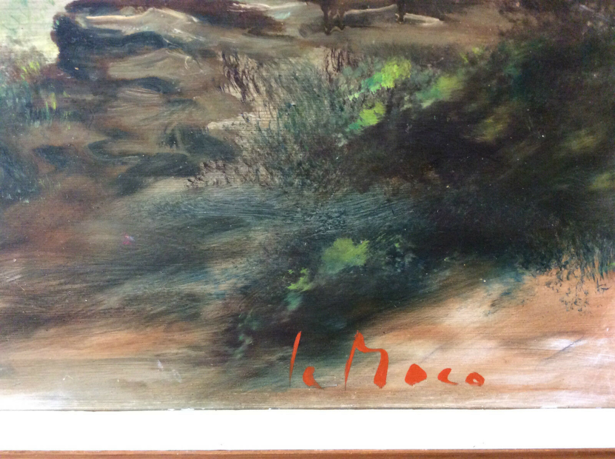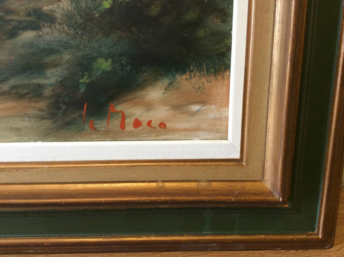 Je vous propose cette grande œuvre signée Le Molo . 61 cm par 49 cm. Dans son cadre 86 cm par 75 cm. Très légère rayure à reprendre, des micros-éclats (discrets) et quelques micros-éclats sur le cadre facile à reprendre. Petits prix à saisir !