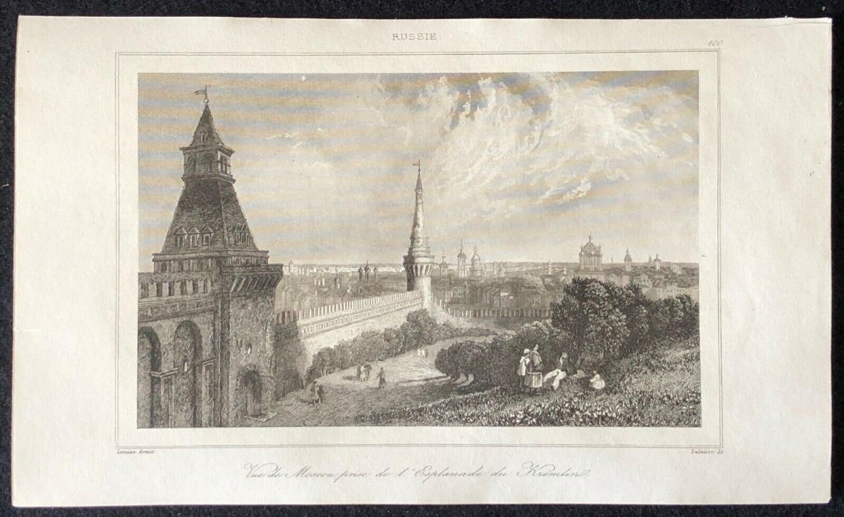 Moscou Russie Moсkbа Moskva ancien et nouveau Palais des Tsars gravure 1838 Je vous propose cette gravure de 1838. La feuille fait 18,5 cm par 13,2 cm, la gravure s...