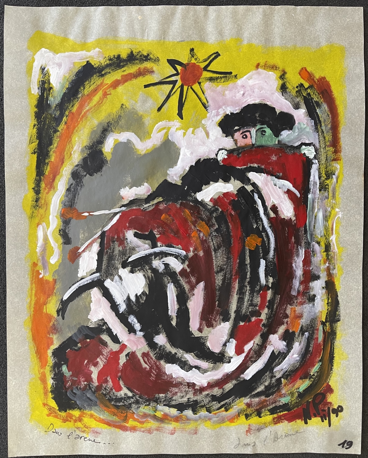 Dans l'arène gouache 1990 Taureau Tauromachie Corrida