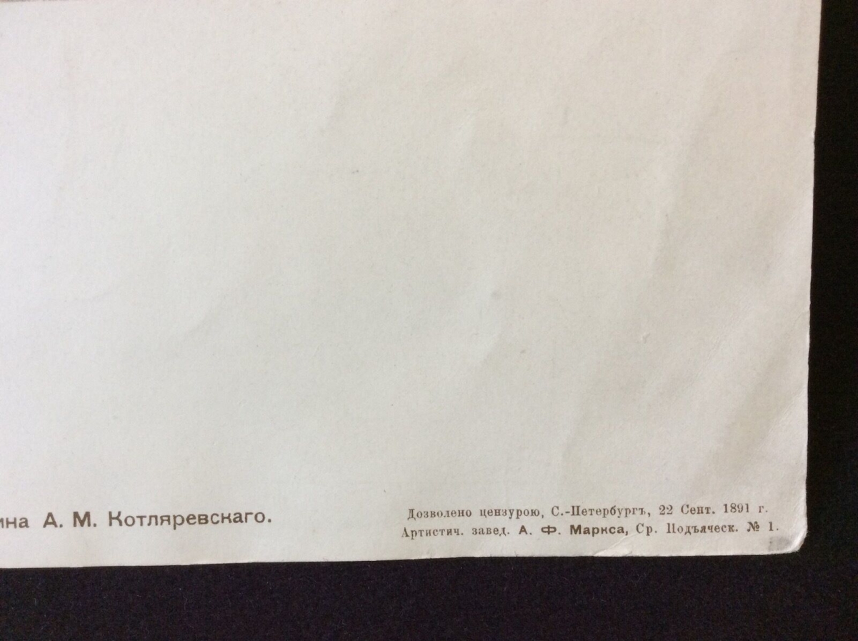 Je vous propose cette lithographie russe du XIXe. La feuille fait 41,7 cm par 26,5 cm, la gravure seule fait 24,8 cm par 32,8 cm. Quelques très légers défauts dans les marges (loin de la gravure) Superbe .