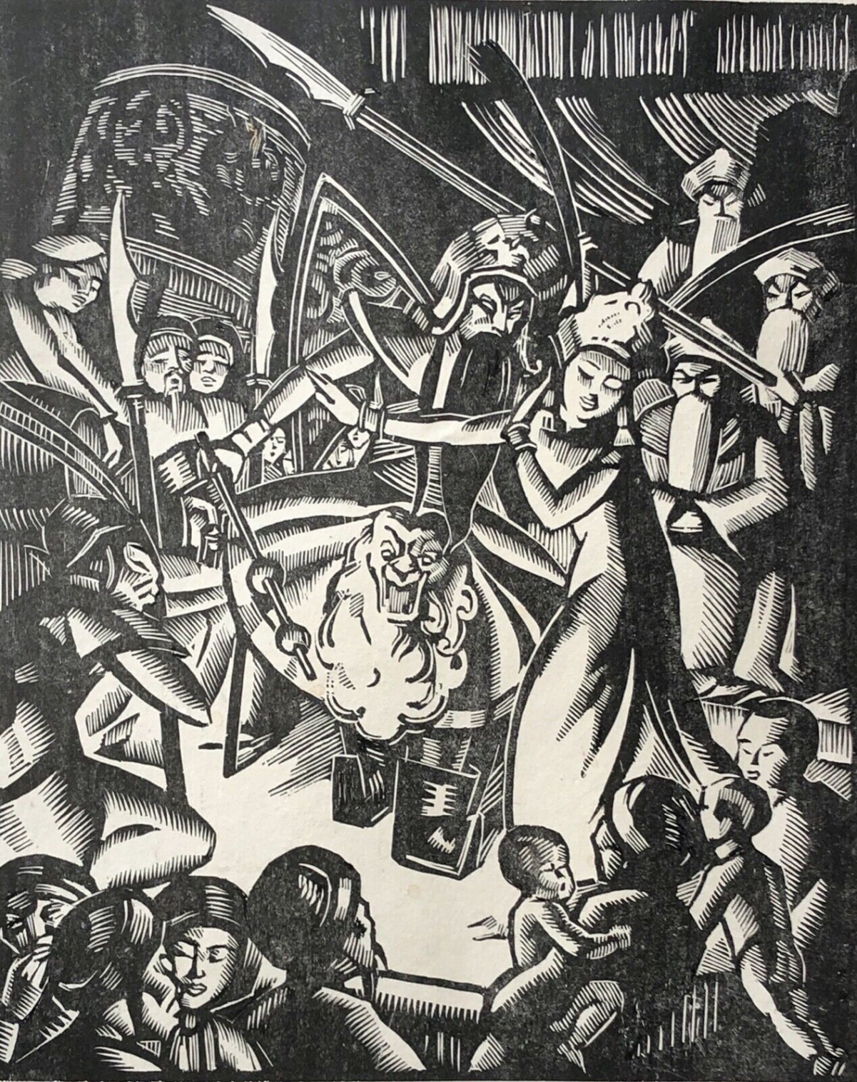 école russe gravure sur bois fête chinoise anonyme ? Chine