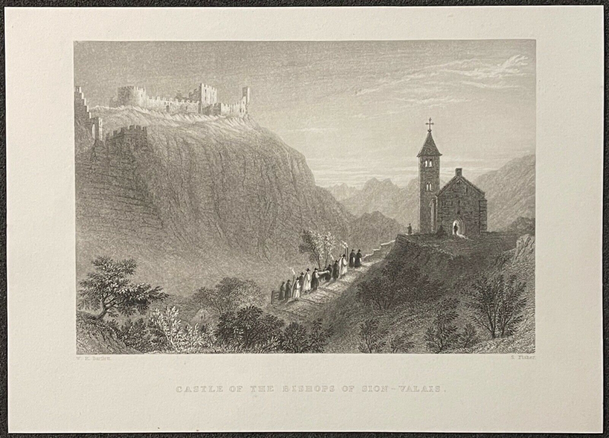Suisse La chapelle de Tous-les-Saints Sion dessin original vers 1875 Je vous propose ce dessin graphique vers 1875. Suisse La chapelle de Tous-les-Saints Sio...