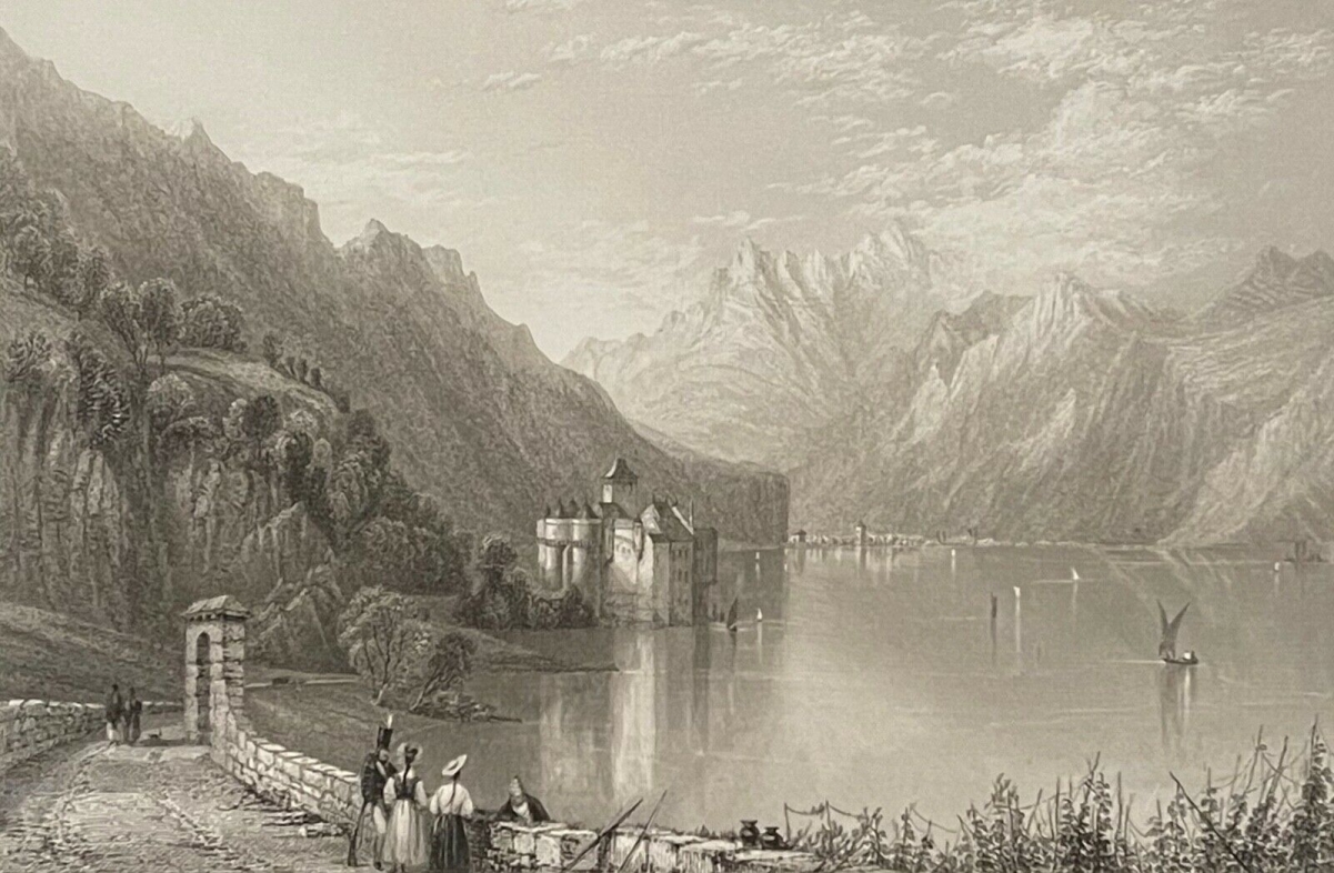 Château Wufflens canton de Vaud Switzerland 1836 Suisse Je vous propose cette lithographie de 1836. La feuille fait 23,5 cm par 17,3 cm, la gravur...