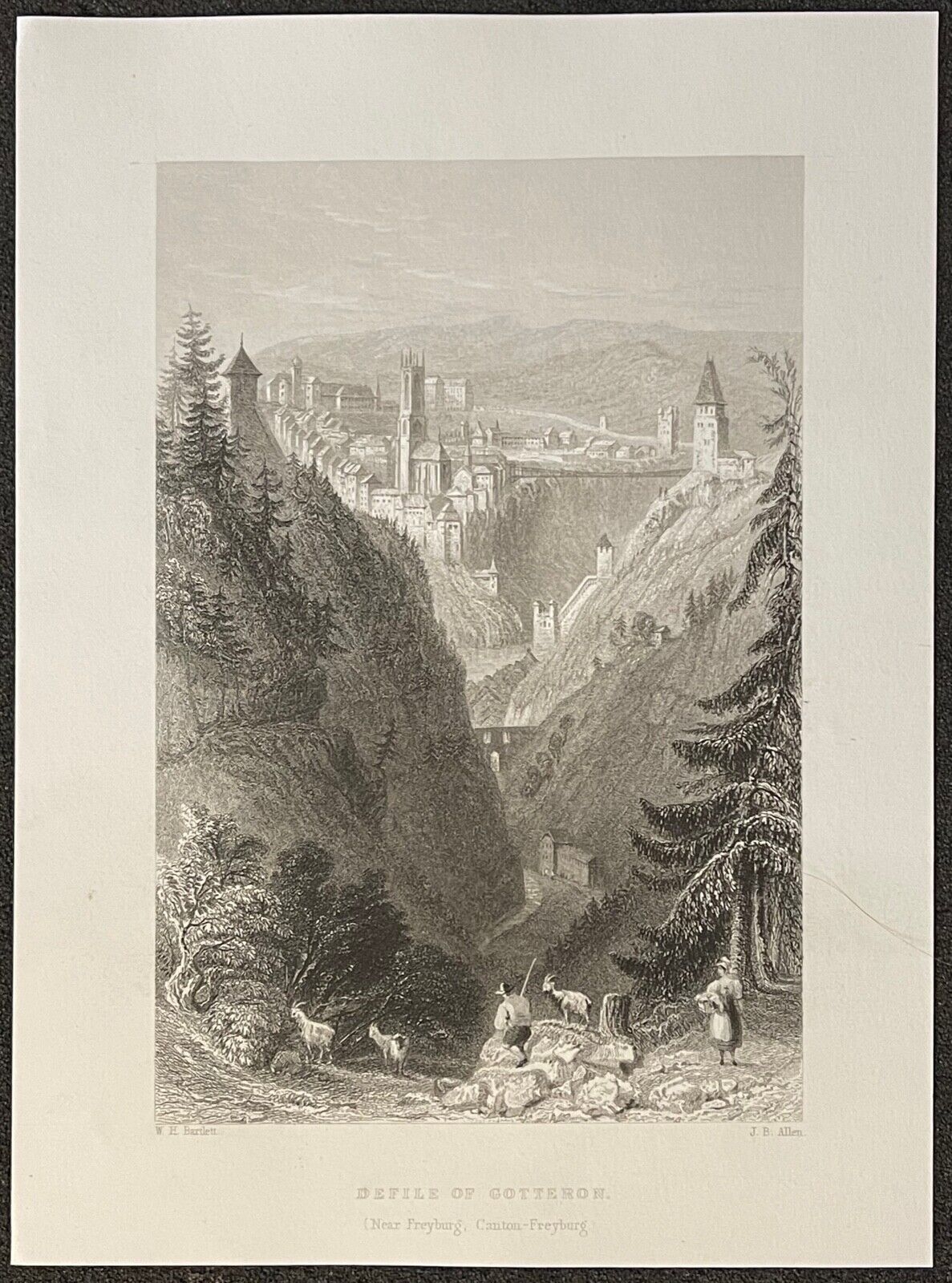 Fribourg Switzerland Alpes Freiburg gravure 1836 Suisse graveur Schroeder Je vous propose cette gravure originale de 1836. La feuille fait 19,9 cm par 15,6 cm, la g...