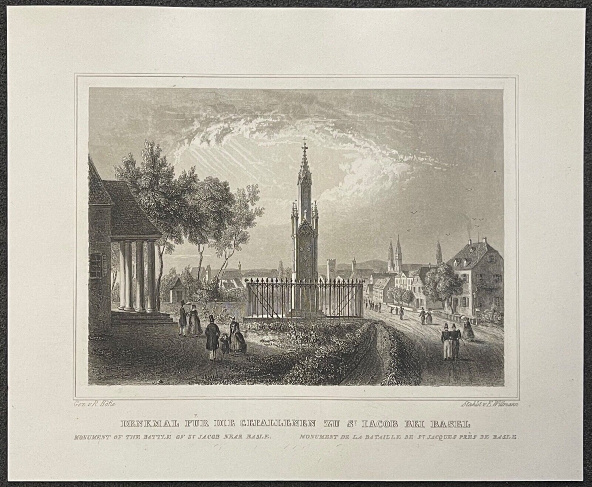 Bâle Switzerland gravure 1860 Suisse Je vous propose cette gravure de 1860 La feuille fait 20,6 cm par 14,8 cm, la gravure seu...