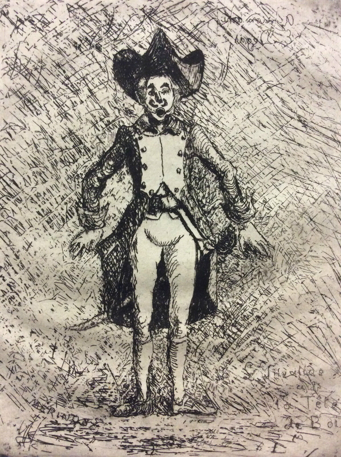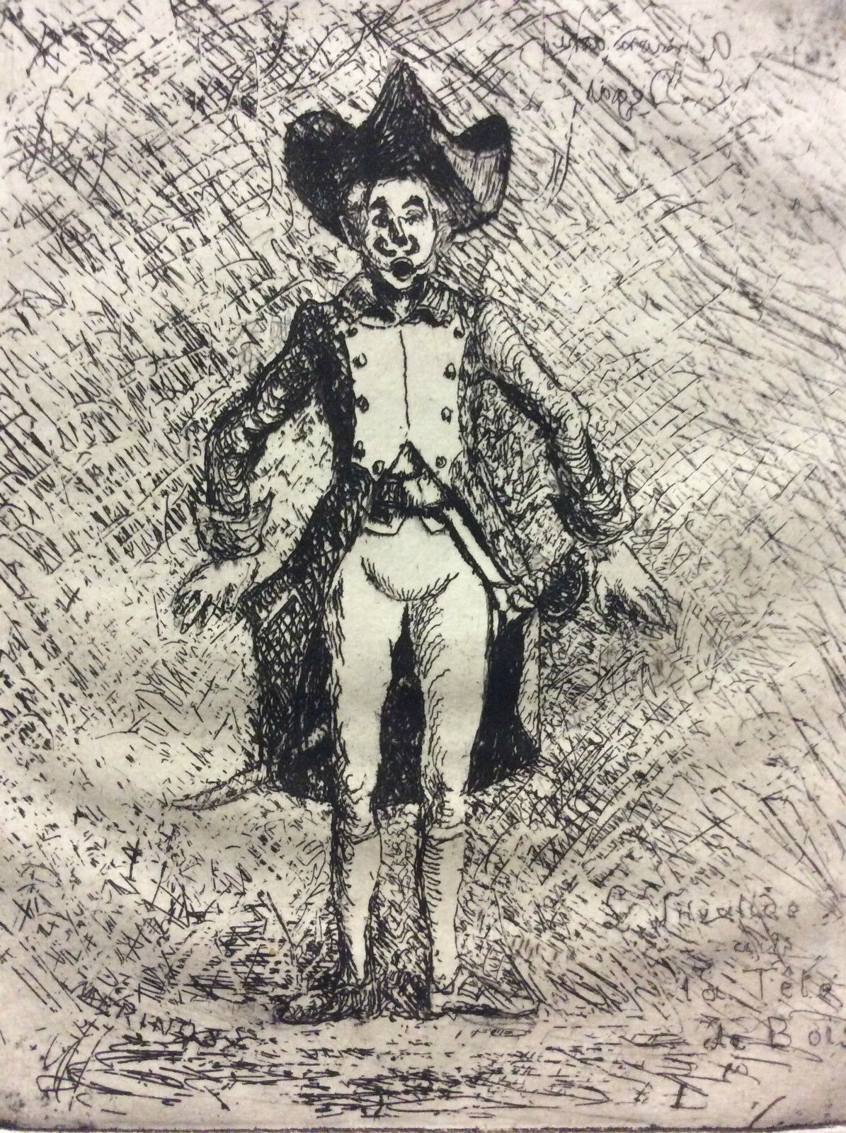 Estampe en pointe sèche signée Houdot Trèfle rampant Je vous propose cette belle estampe en pointe sèche. Représentation dans le gout surréali...