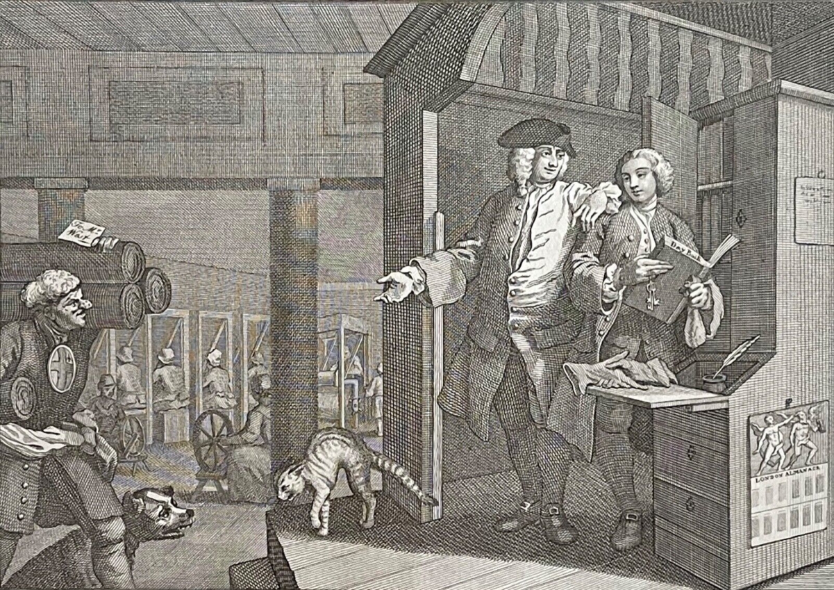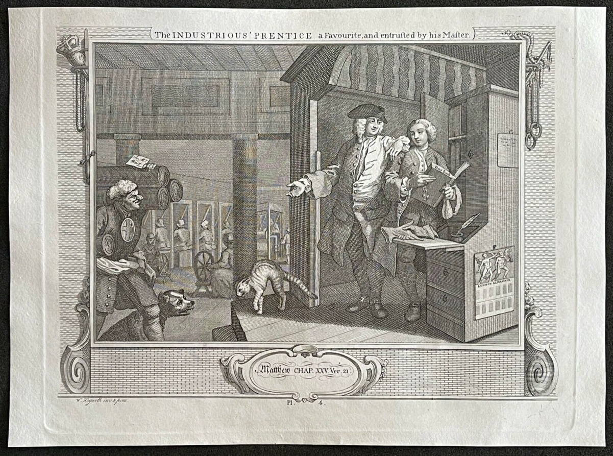 Je vous propose cette gravure du XIXe vers 1850 d'après William Hogarth (1697-1764). Né le 1à novembre 1697 à Londres décédé le 26 octobre 1764 à Chiswick (Londres) fondateur de la St Martin's Lane Académy.