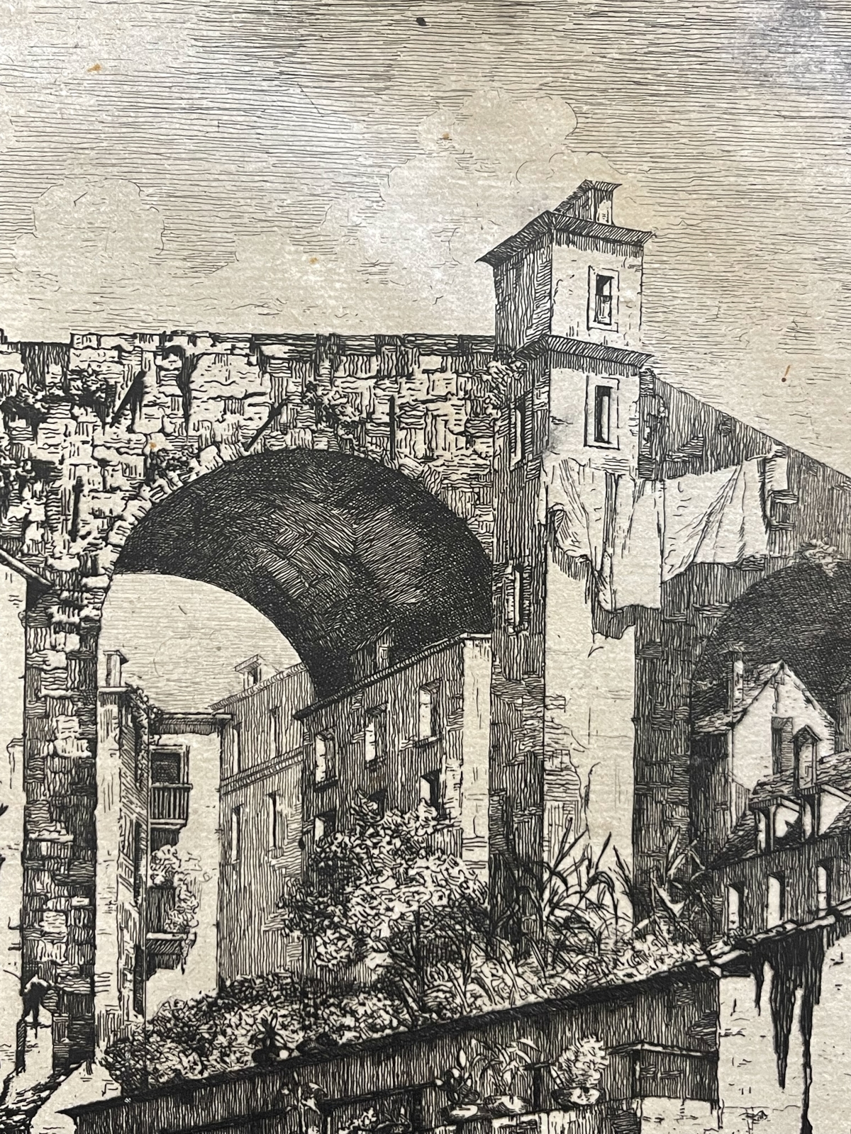 Gênes Italie pointe sèche 1878 Gabrielle Niel (1831-1919) Italia
