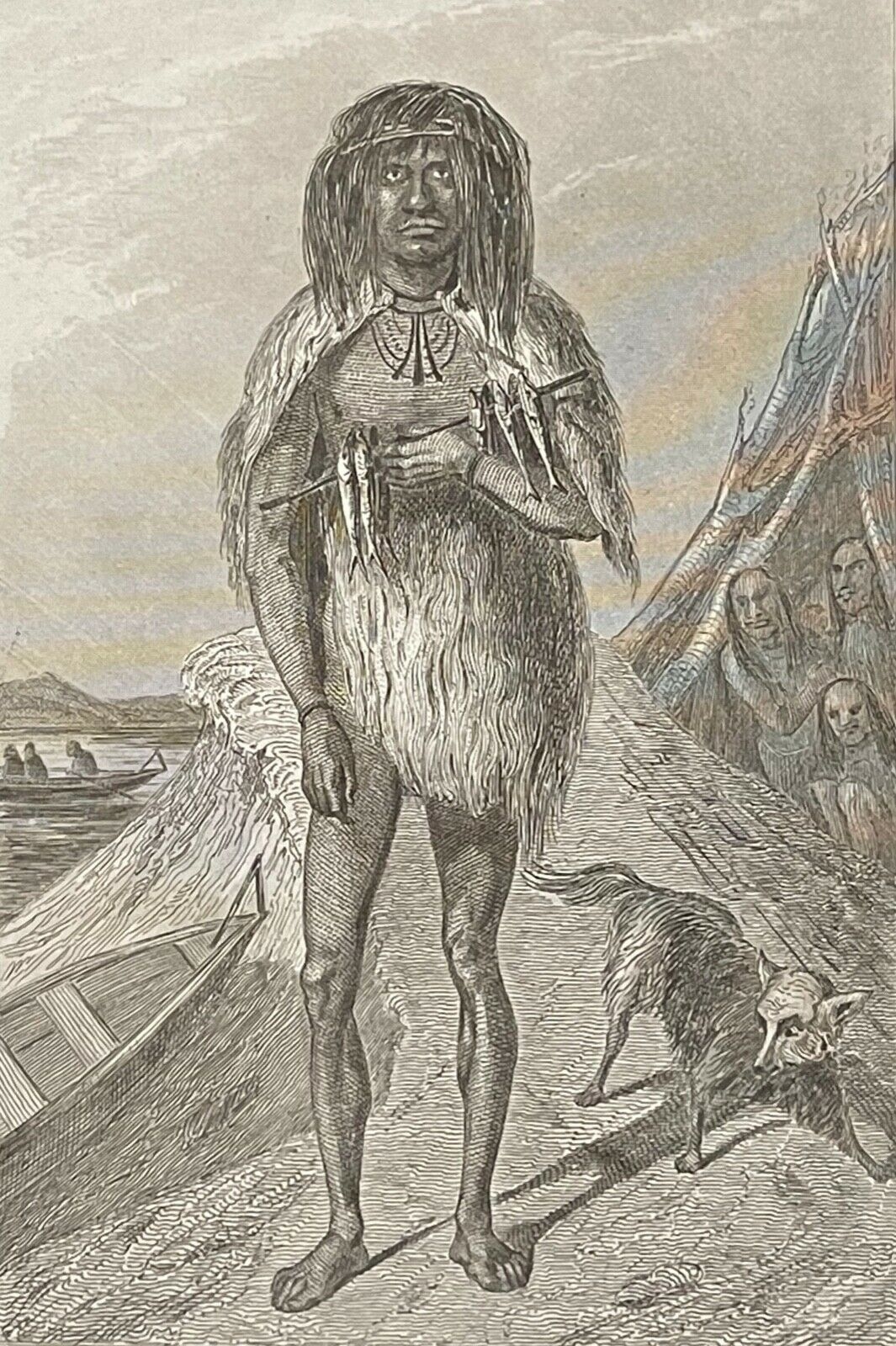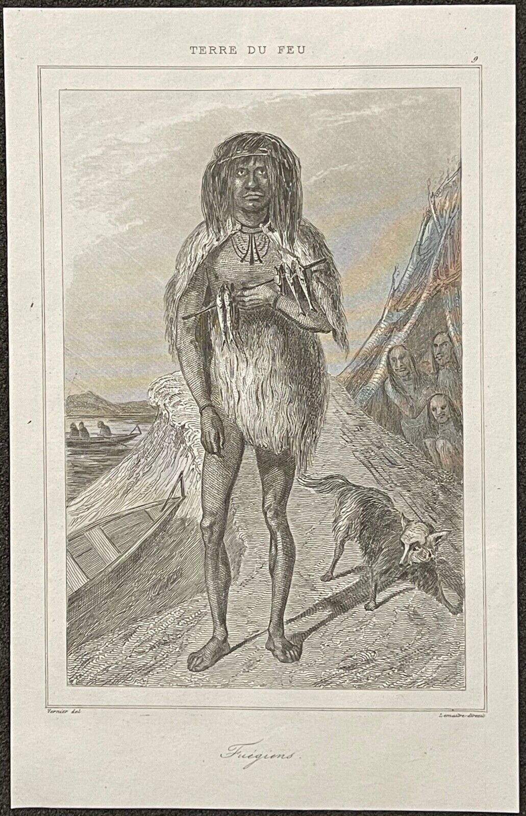 Wigwams Fuégien Port Esperance Terre de feu Chili Argentine lithographie 1836 Je vous propose cette lithographie vers 1836. La feuille fait 16,8 cm par 11,5 cm, la gr...