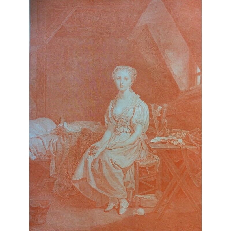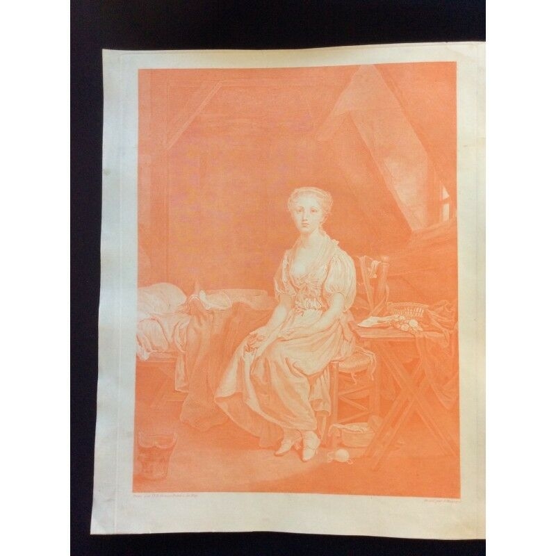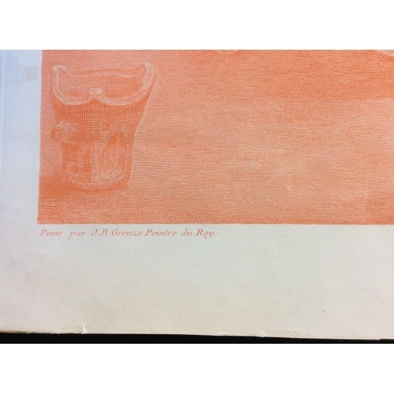 Artculture6 vous propose cette rare estampe d'après le tableau de Greuze tableau vers 1775. La vertu chancelante. Gravure au burin de Jean Massard , tirage inversé façon sanguine, tirage légèrement tardif entre 1798 et 1800 a priori.