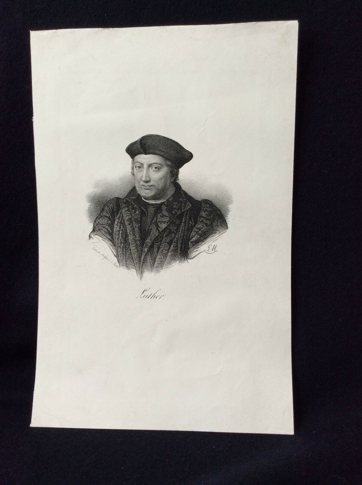 Je vous propose cette gravure représentant Martin Luther (1483-1546), réformateur religieux et théologien . L'estampe est datée du XIXe siècle (circa 1850). La feuille fait 24,8cm par 16,5cm. Le portrait seul mesure environ 10cm par 10cm. Belle pièce.