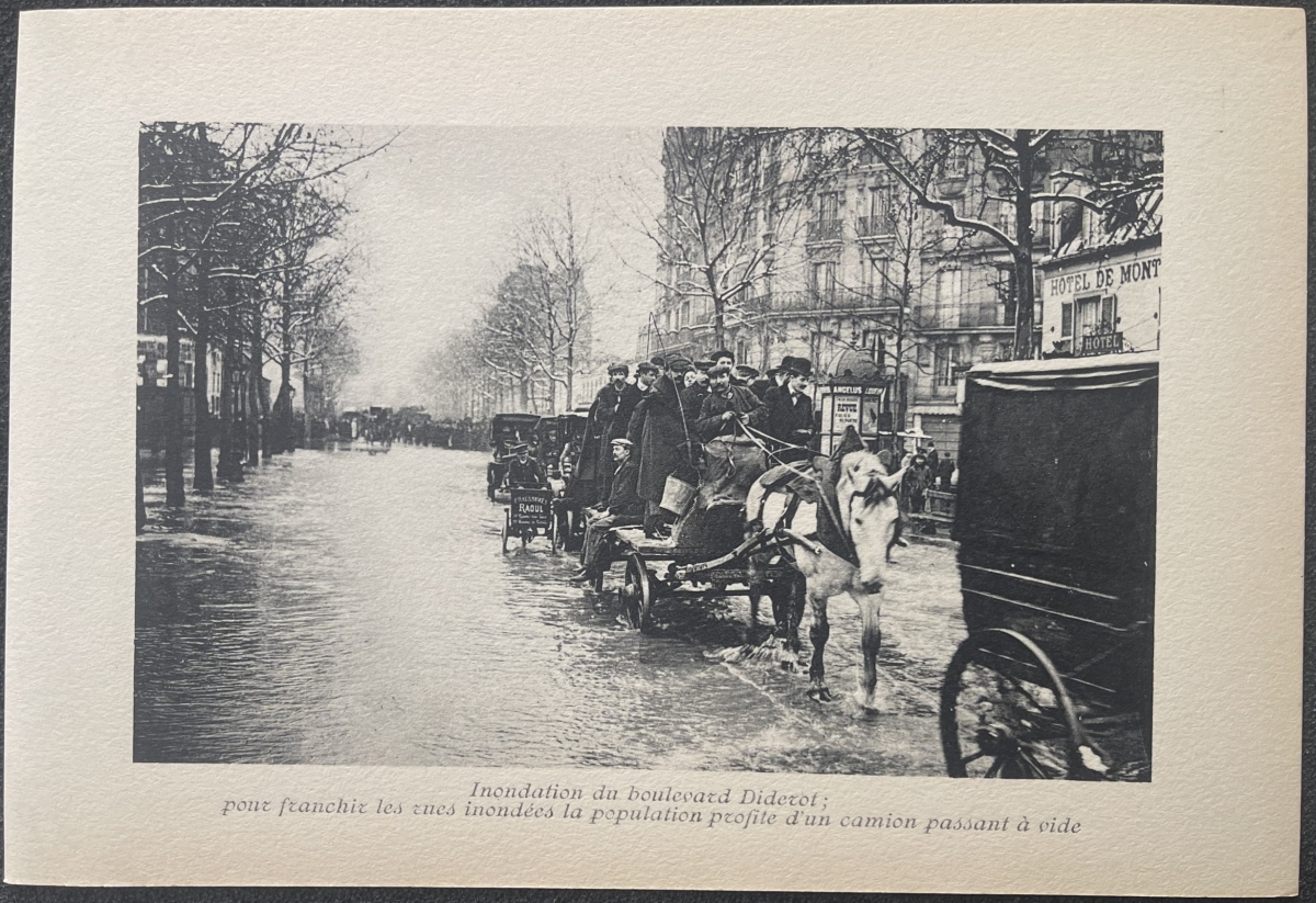 Paris inondation Boulevard Diderot héliogravure de 1910 France Je vous propose cette vue de l'inondation. La feuille fait 17,7 cm par 12 cm la gravure ...