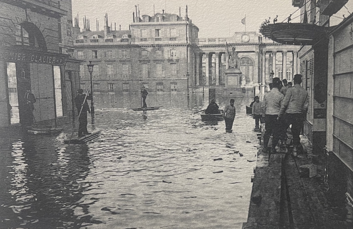 Paris inondation Porte de la gare héliogravure de 1910 France Je vous propose cette vue de l'inondation. La feuille fait 17,5 cm par 12 cm la gravure se...