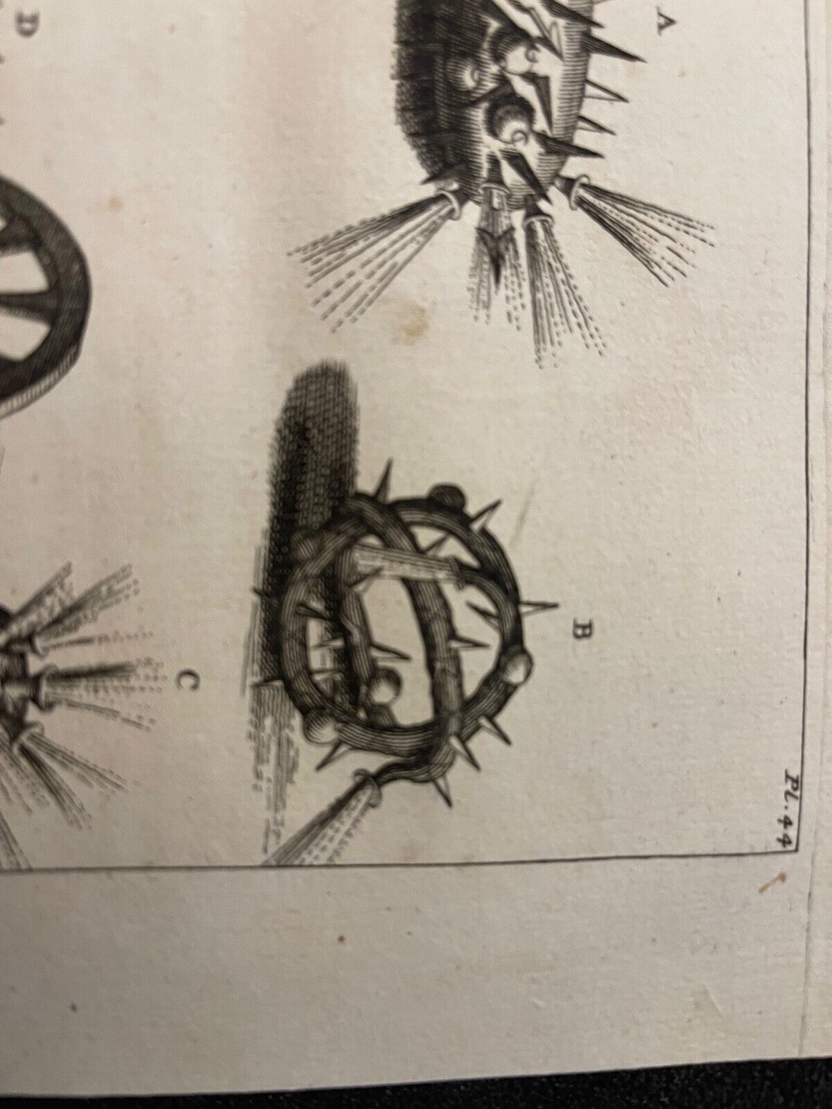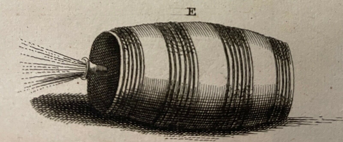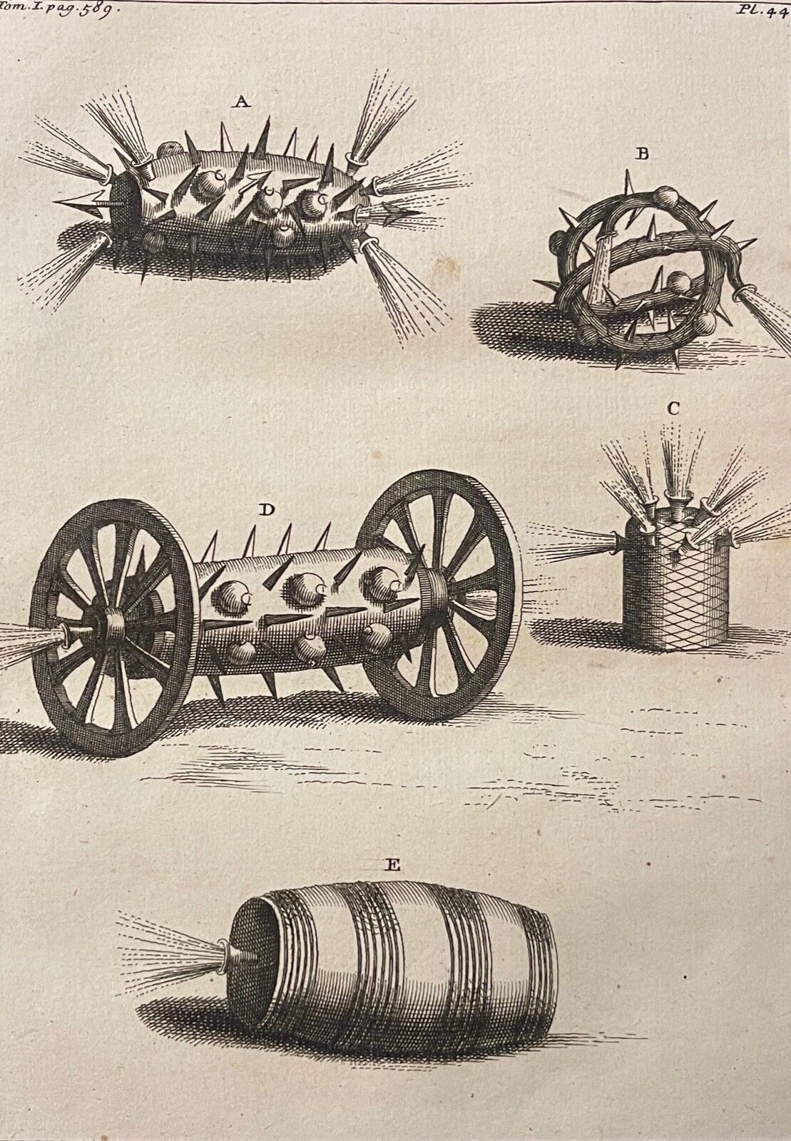 Artillerie machines infernales Hérisson serpenteau Baril gravure 1721