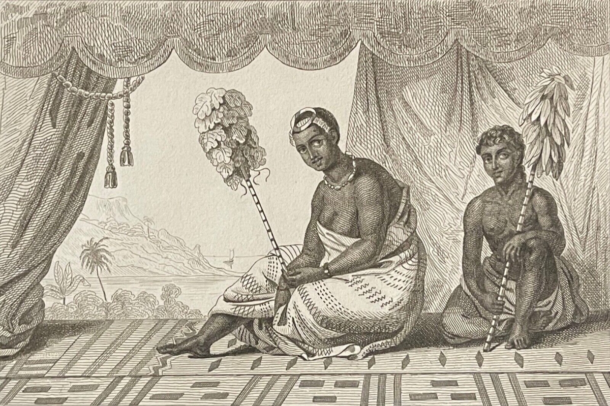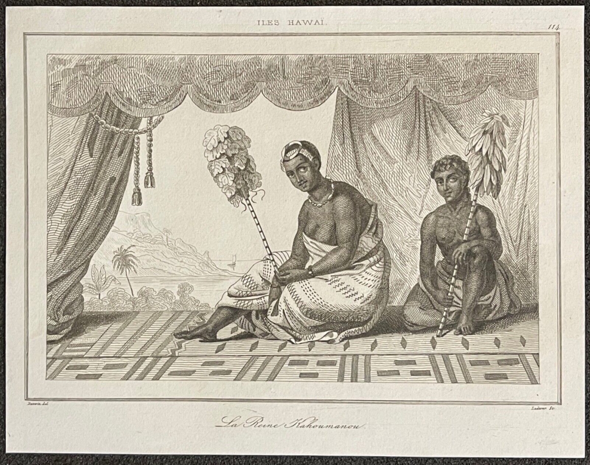 Hawai Etats-Unis le roi Koui Kéouli et la princesse Nahinal 1836 XIXe USA Je vous propose cette belle lithographie. Tirage de 1836. La feuille fait 18,5 cm par 12,5...