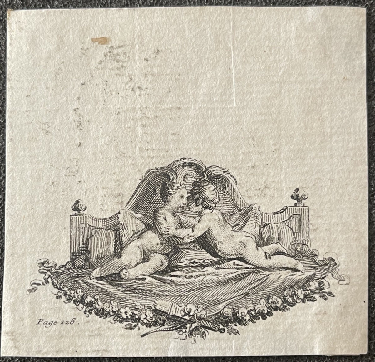 Artculture6 vous propose ce cul de lampe de 1757. Putti s'embrassant. La feuille fait 6,4 cm par 6 cm, la gravure seule : 5,7 cm par 3,2 cm. Gravure sur cuivre sur papier de lin vergé.