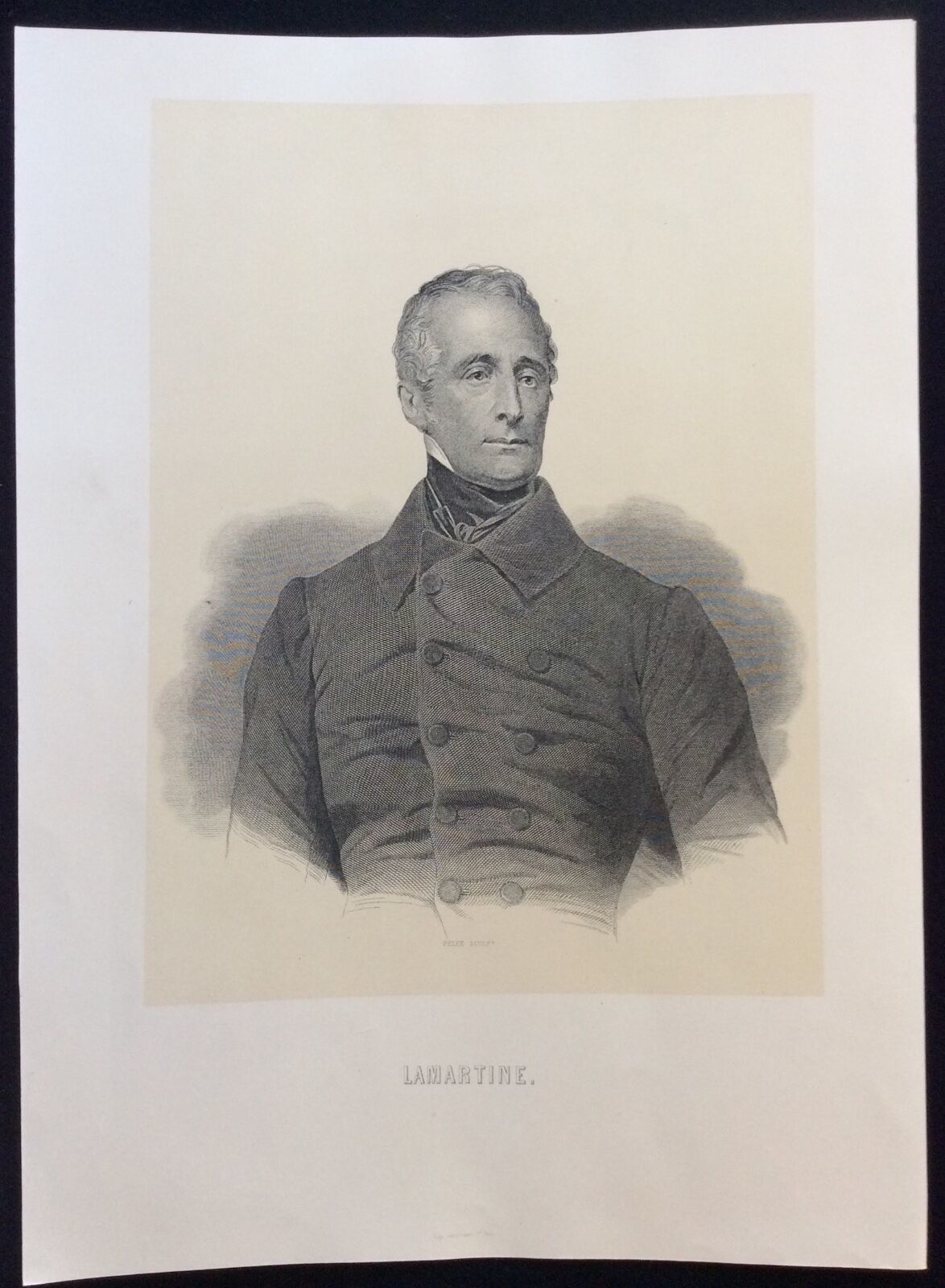 Je vous propose cette lithographie représentant Alphonse de Lamartine (1790-1869). Gravure du XIXème siècle vers 1880. La feuille fait 40 cm par 28,5 cm, la gravure seule 29,3 cm par 21,7 cm. Jolie pièce à petit prix.