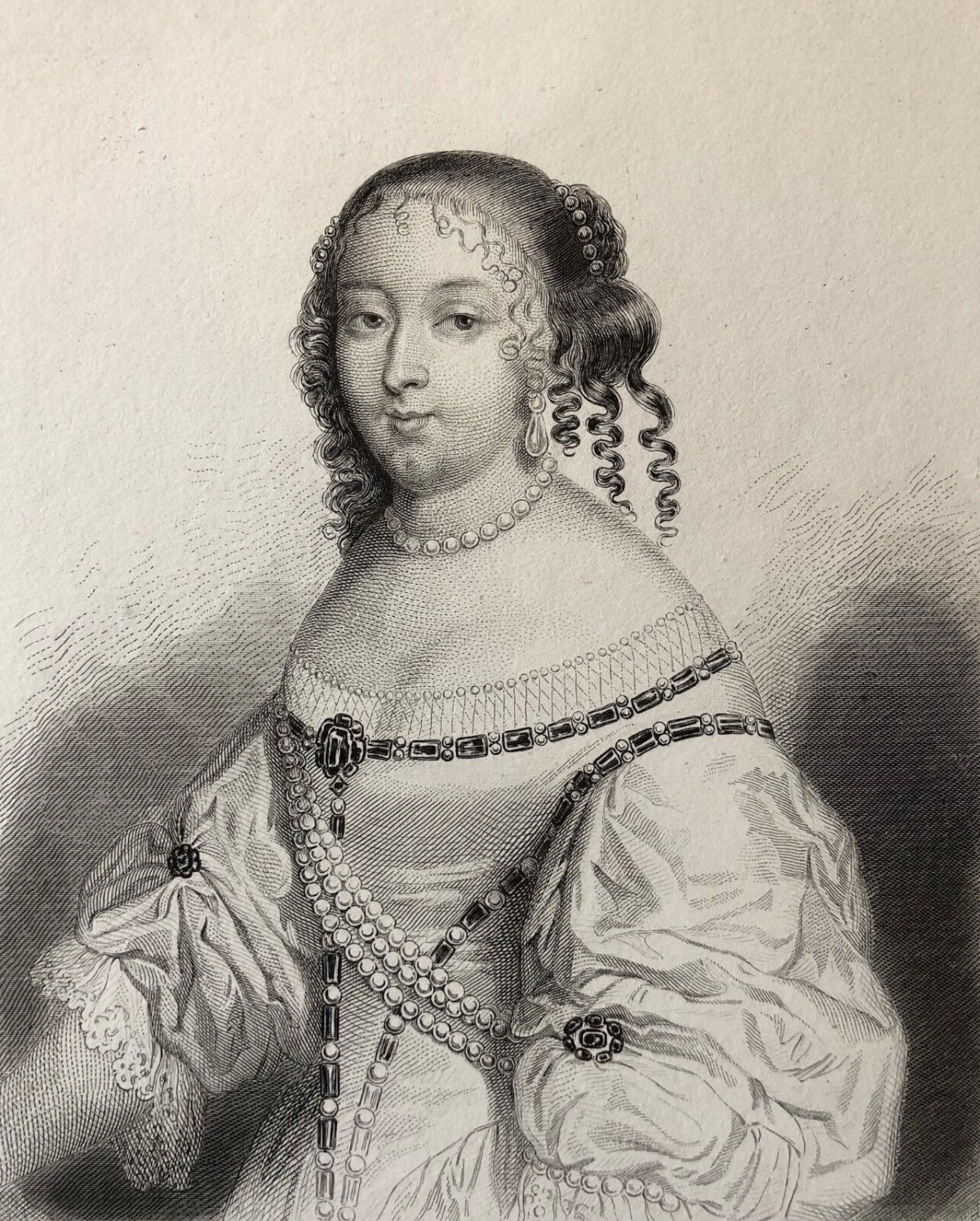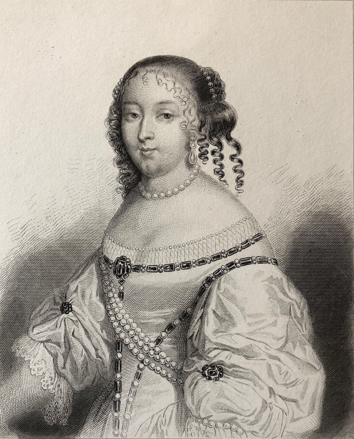 Henriette-Anne d'Angleterre 1644-1670 Maison Stuart épouse de Philippe d'Orléans Je vous propose ce portrait d'Henriette-Anne d'Angleterre (1644-1670). La feuille fait 22...