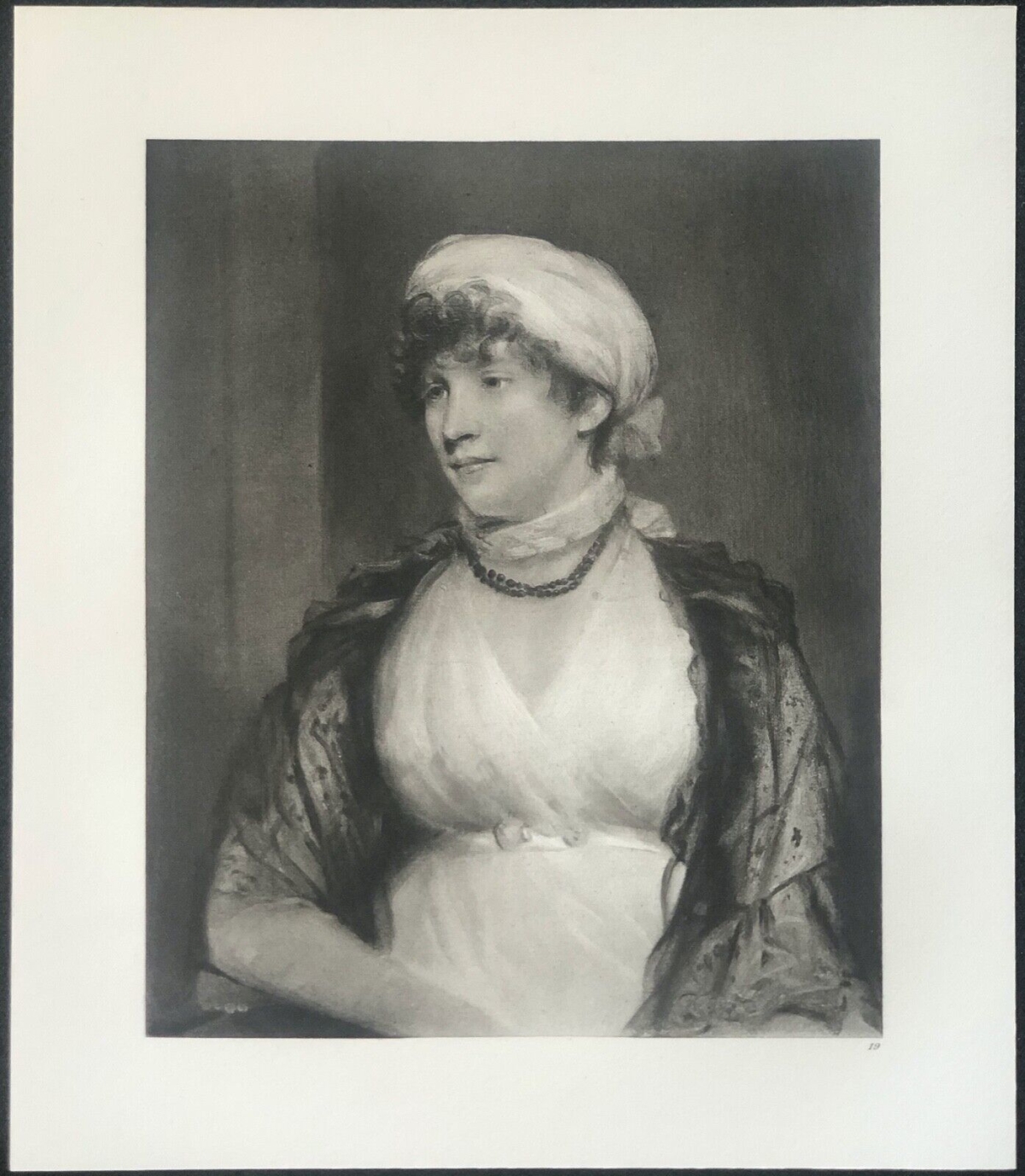 Je vous propose ce portrait de Madame Raine. D'après John Hoppner (1758-1810). 26,6 cm par 22,9 cm environ. Portrait seul 20,6 cm par 16,8cm. Sur papier chiffon BFK. Superbe tirage de 1910 en héliogravure !
