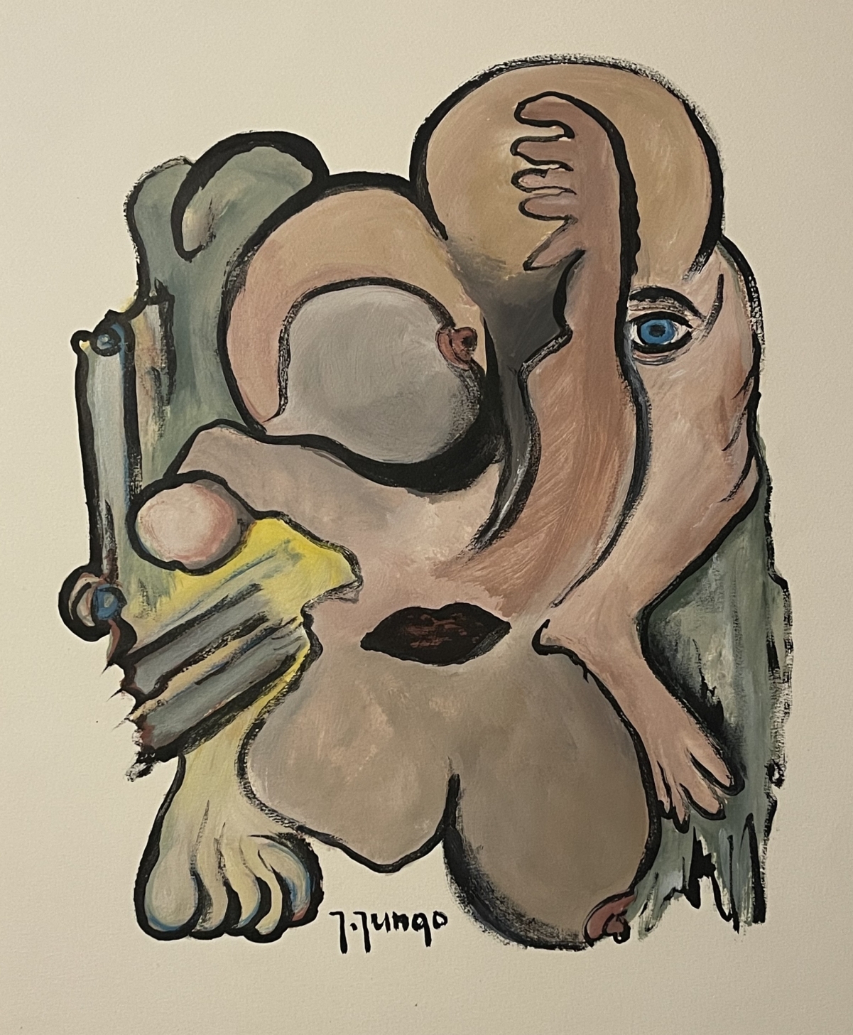 Expressionniste gouache signée Jungo 2ème moitié XXème copie