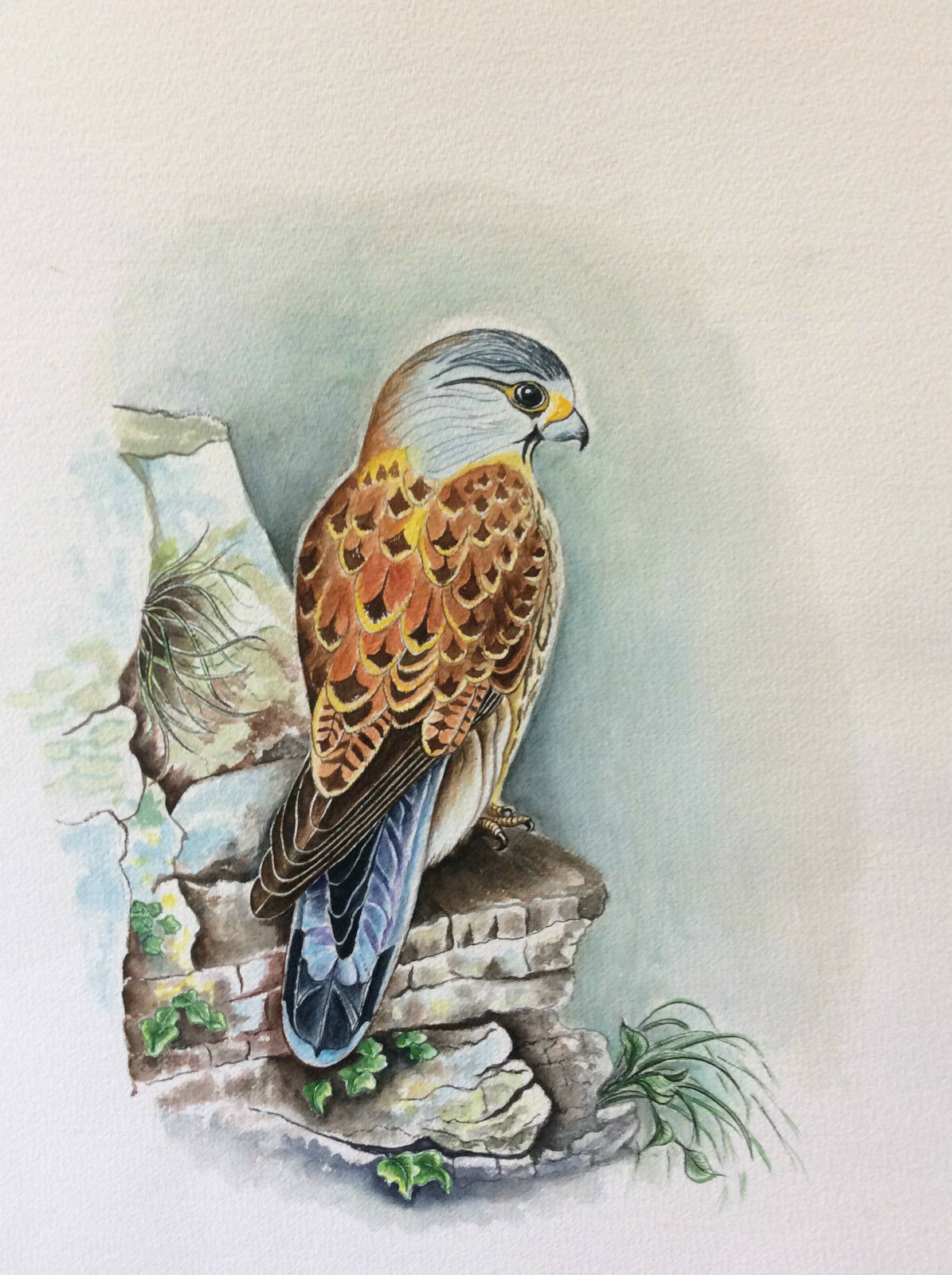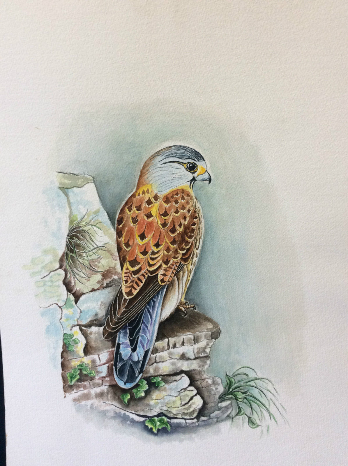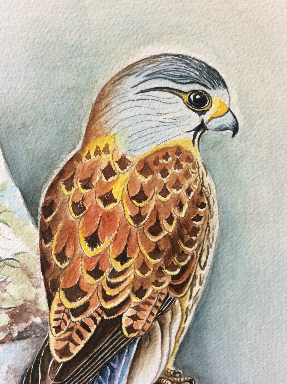 Grande aquarelle rapace faucon attribuée à Mireille Bailly