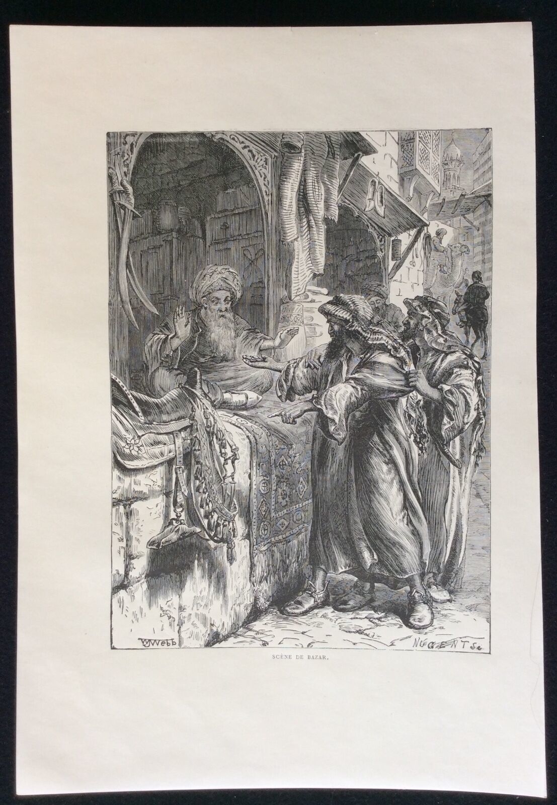 Israël Palestine Scène de bazar gravure sur acier 1892