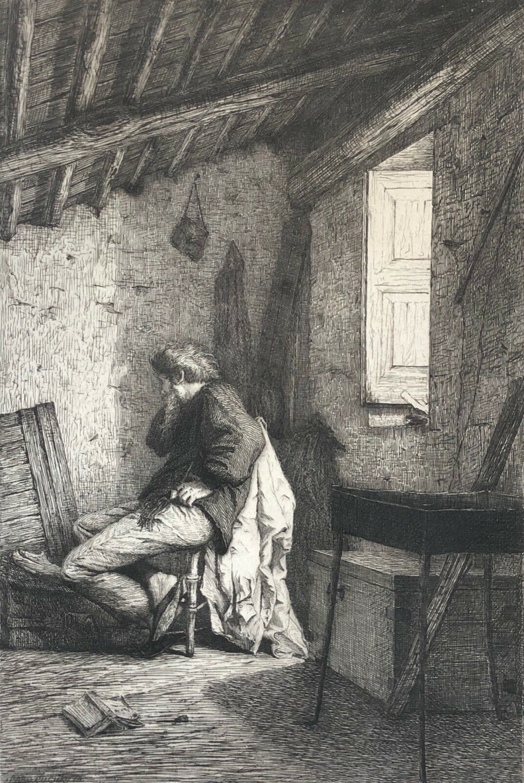 Saro Cucinotta (1830-1871) Défaillance Eau forte Rare œuvre Italia XIXe