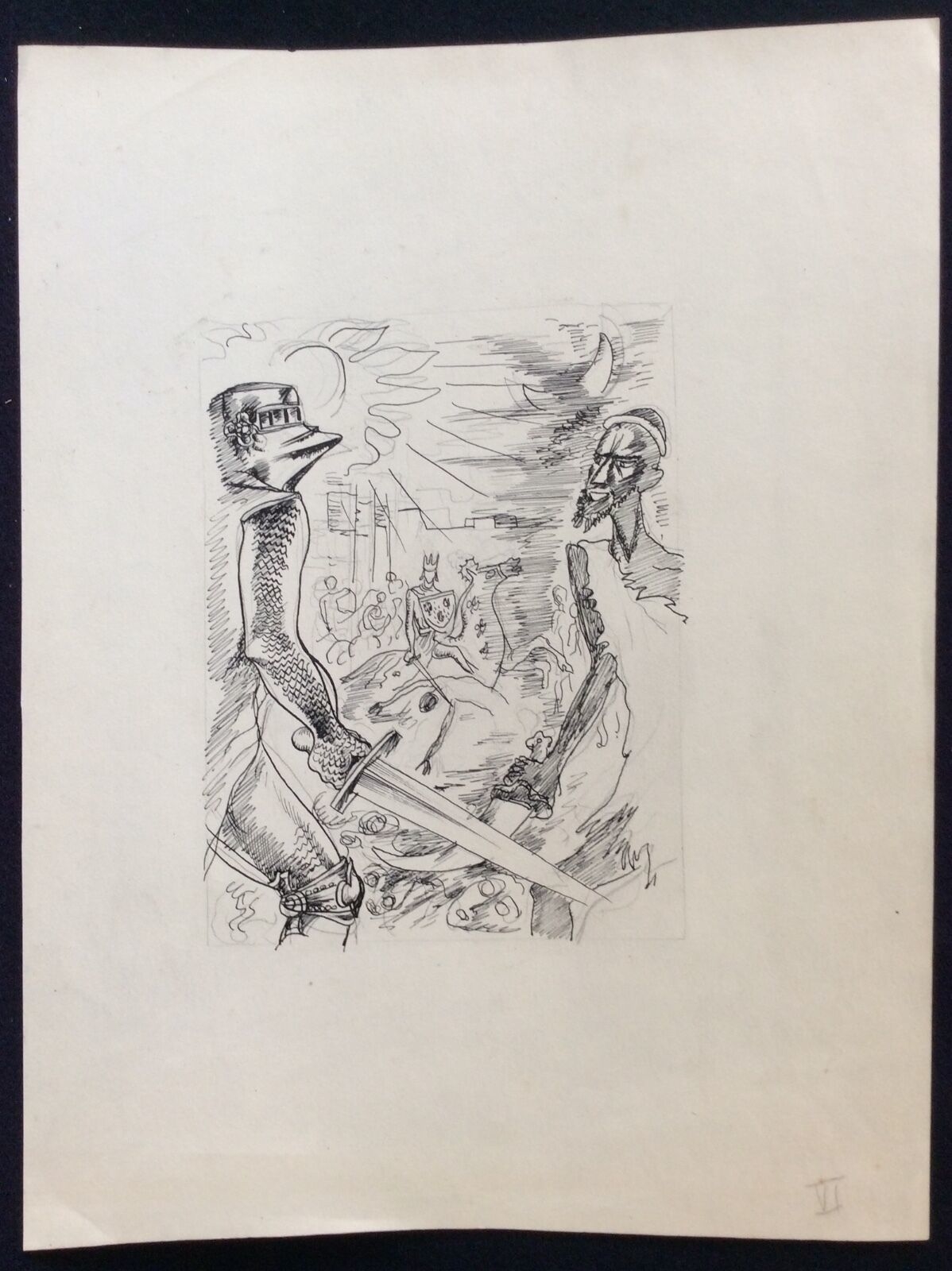 Je vous propose cette encre d'une série au thème de la vie de Saint-Louis attribué à Bernard MILLERET (1883-1957). 24,2cm par 31,8cm. Dessin lui même 17cm par 13cm. Voir d'autres pièces de la série dans mes autres ventes.