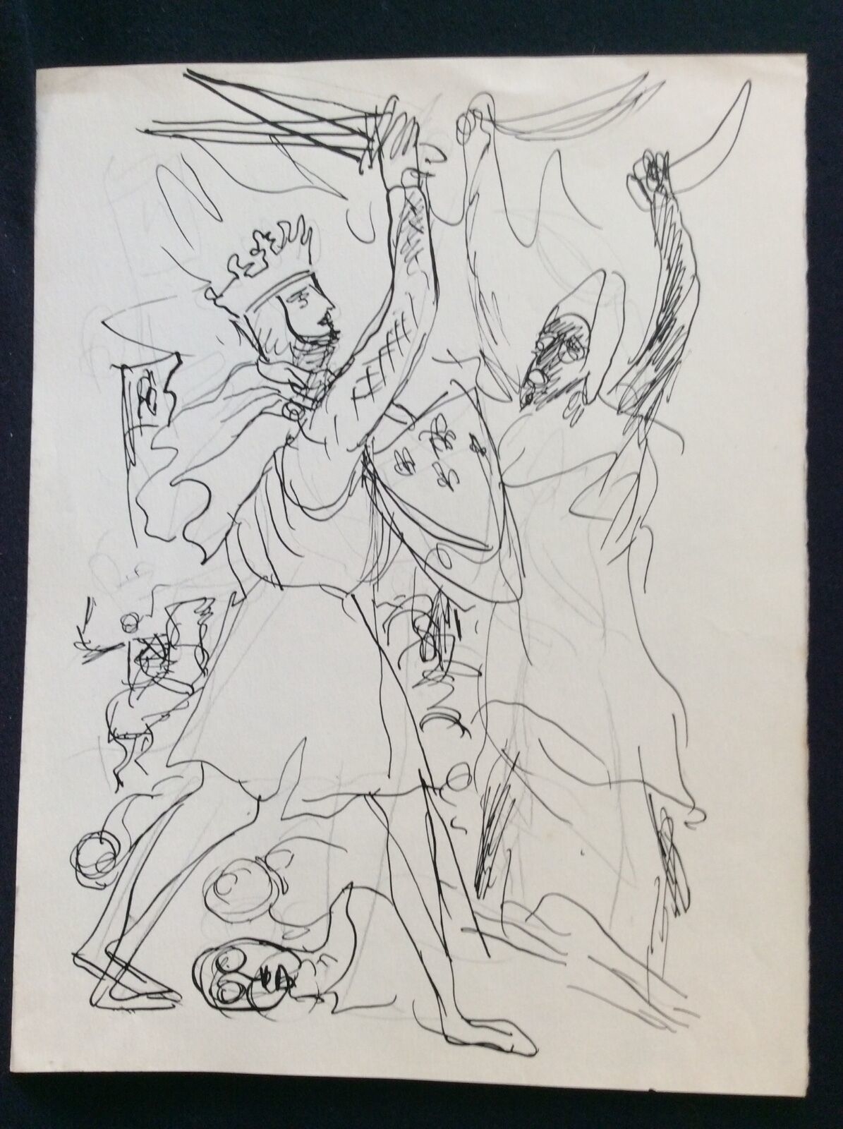 Je vous propose cette encre d'une série au thème de la vie de Saint-Louis attribué à Bernard MILLERET (1883-1957). 32,5cm par 25cm. Voir d'autres pièces de la série dans mes autres ventes. Port groupé.