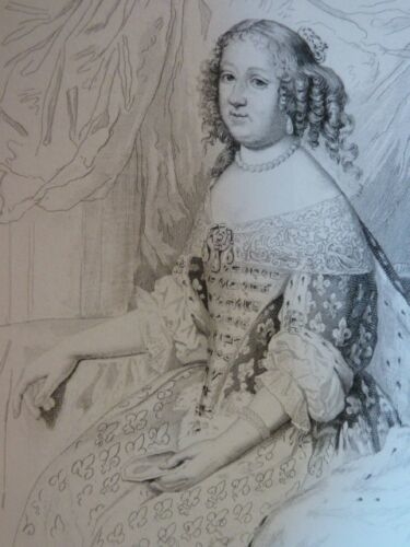 Je vous propose cette estampe Galerie Historique de Versailles, XIXe siècle. Représentant Marie-Thérèse d'Autriche épouse du roi Louis XIV, née le 10 septembre 1638 décédé le 30 juillet 1683. 26,5cm par 18cm. Gravure seule : 14,2cm par 11,4cm. Superbe.